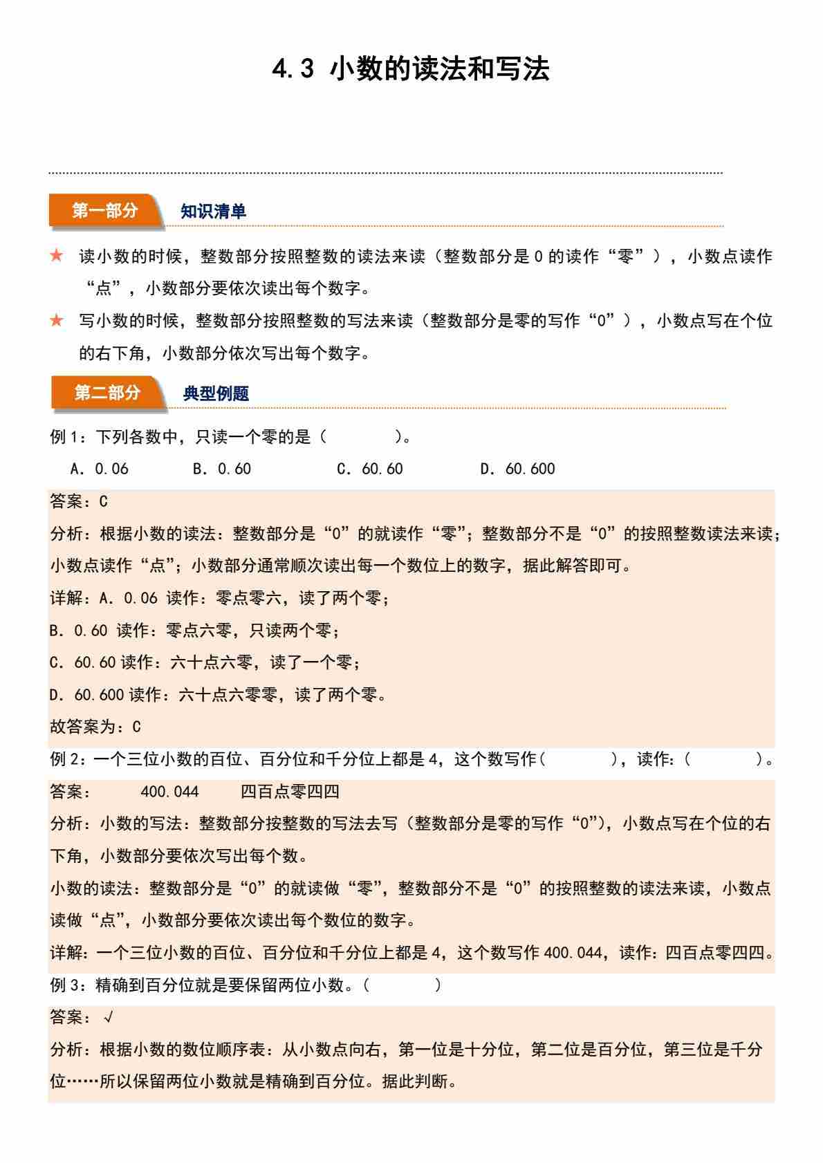 4.3 小数的读法和写法(分层作业)