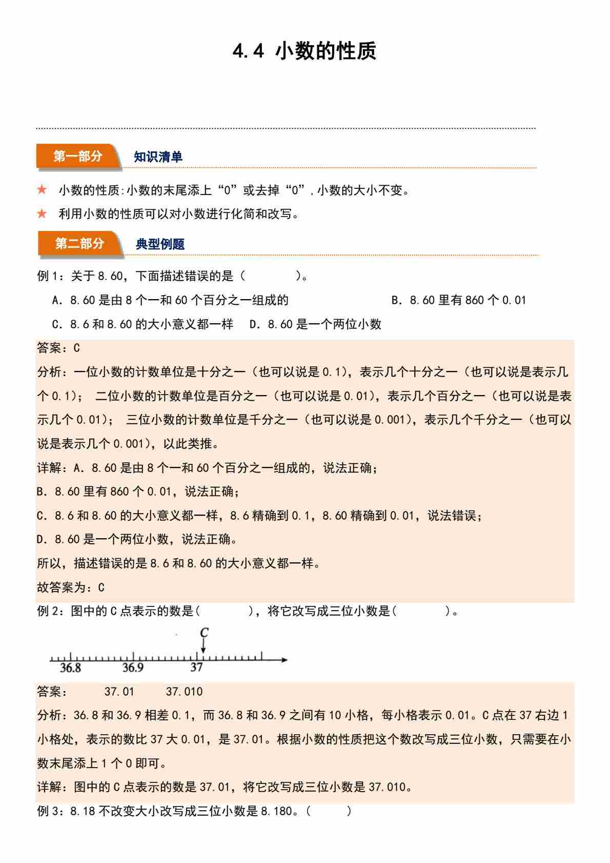 4.4 小数的性质(分层作业)