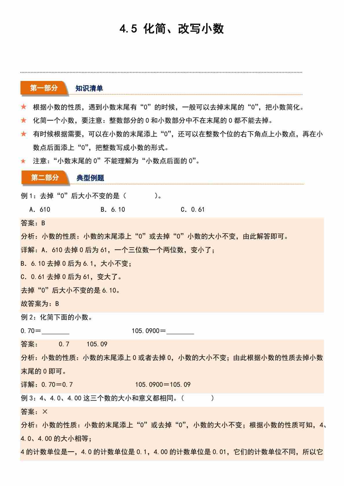 4.5 化简、改写小数(分层作业)