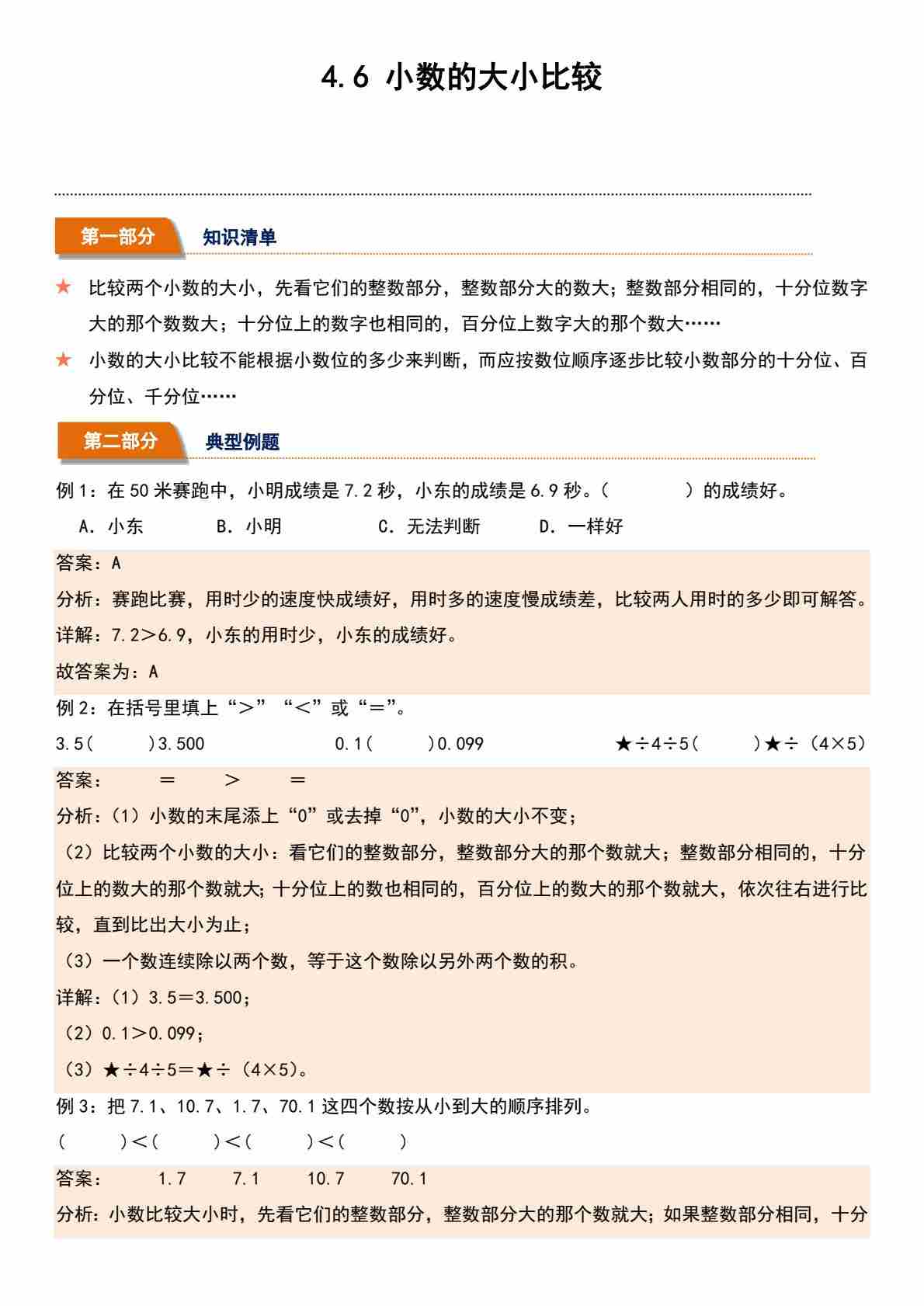 4.6 小数的大小比较(分层作业)