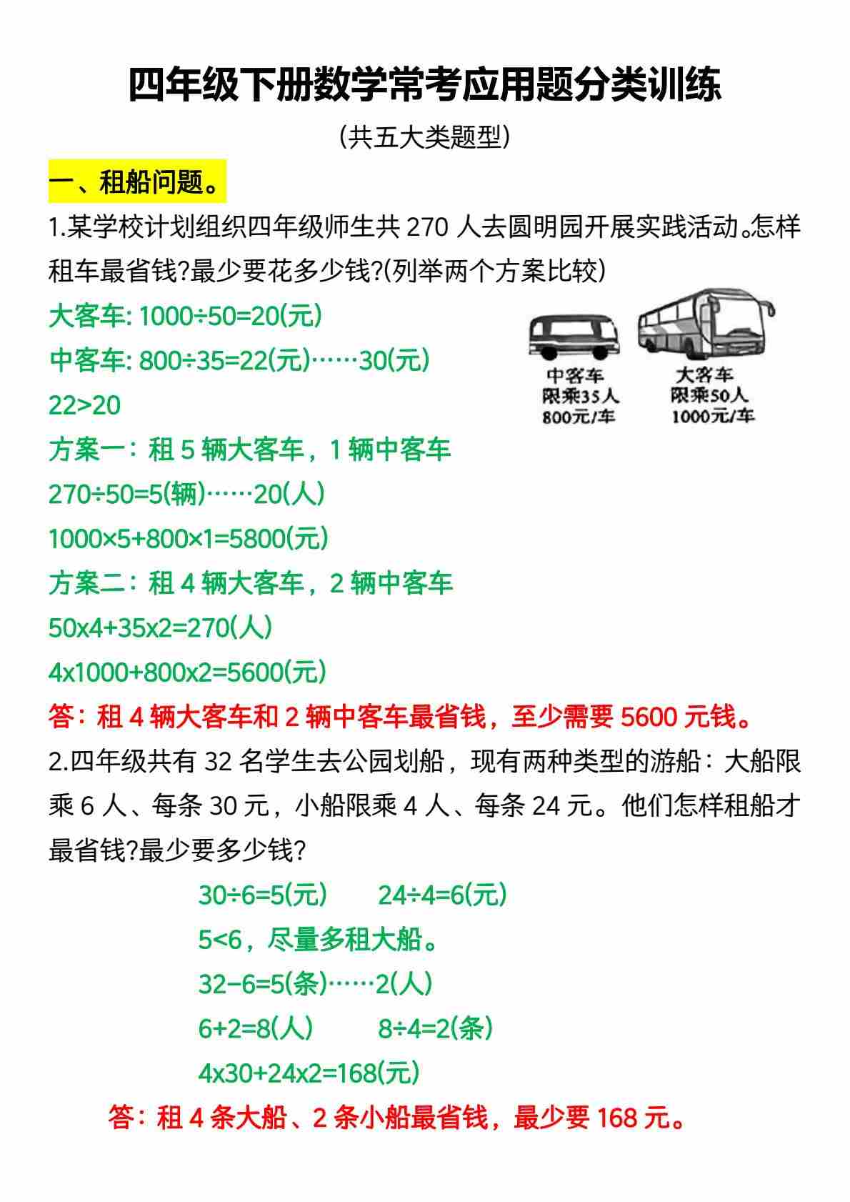 四(下)数学常考应用题分类训练