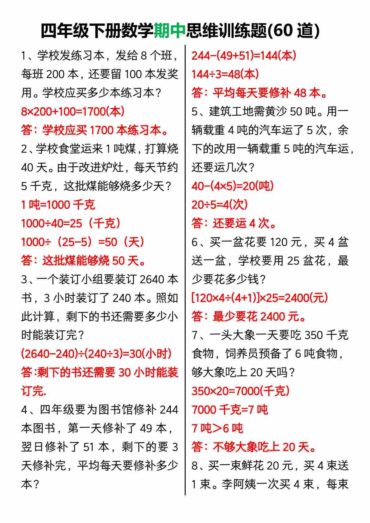 四(下)数学期末复习·终极压轴版(原卷版)苏教版