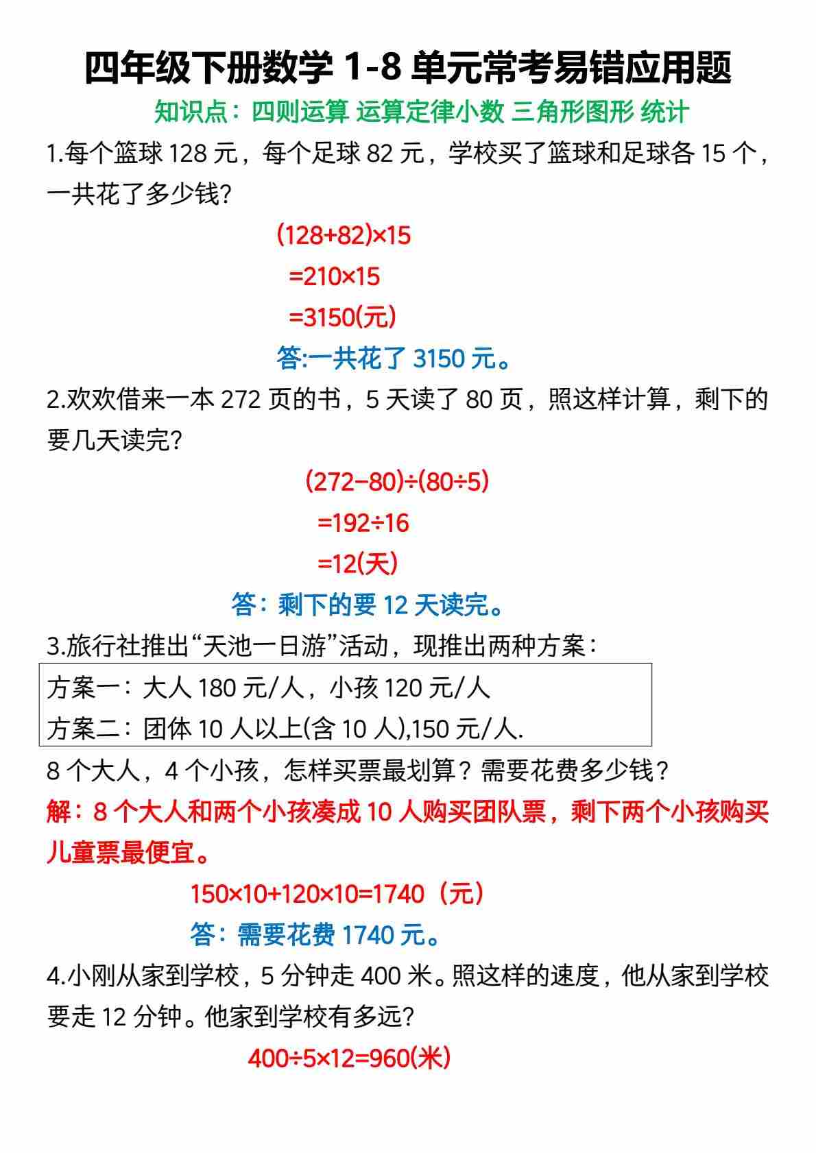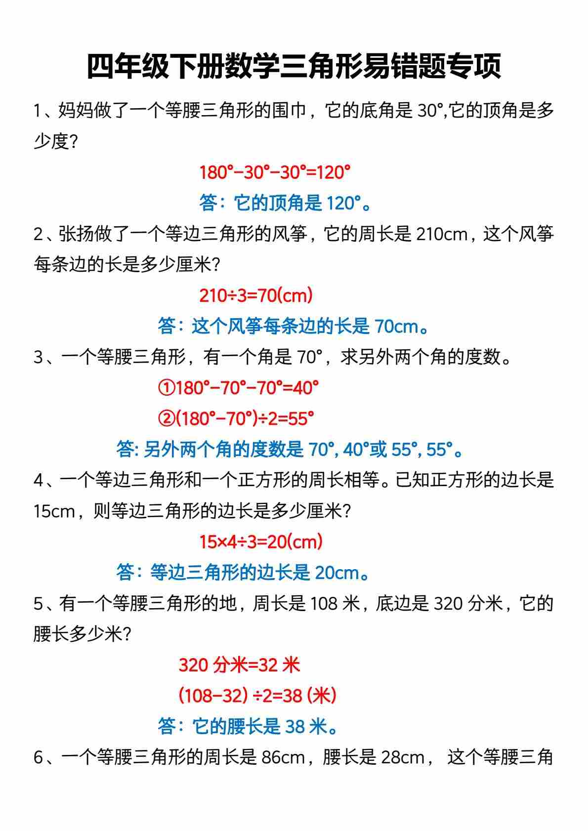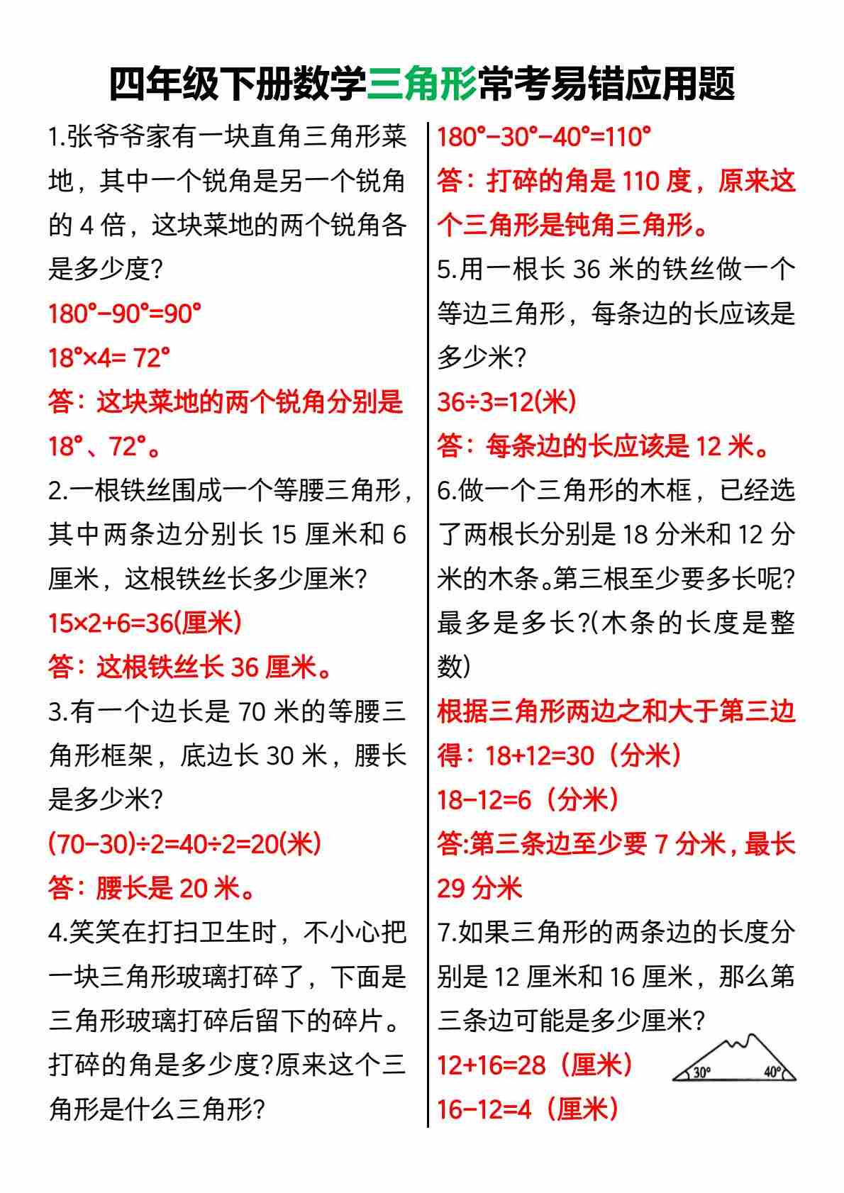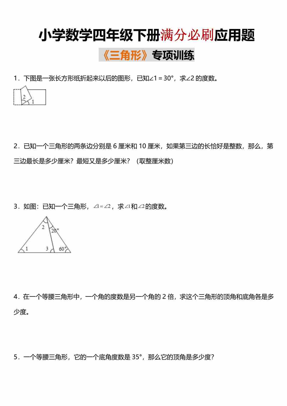 四(下)数学【满分必刷应用题《三角形》专项训练】