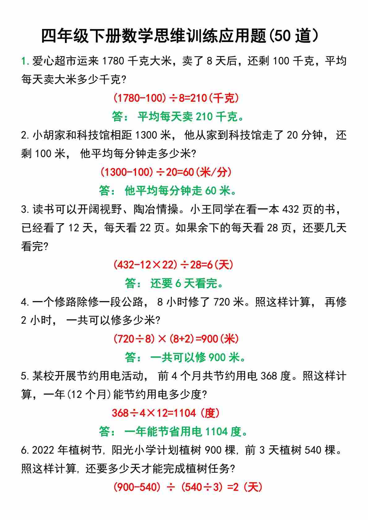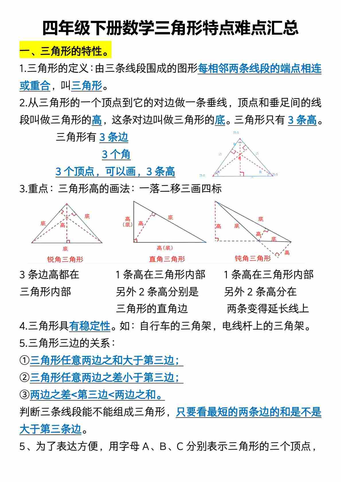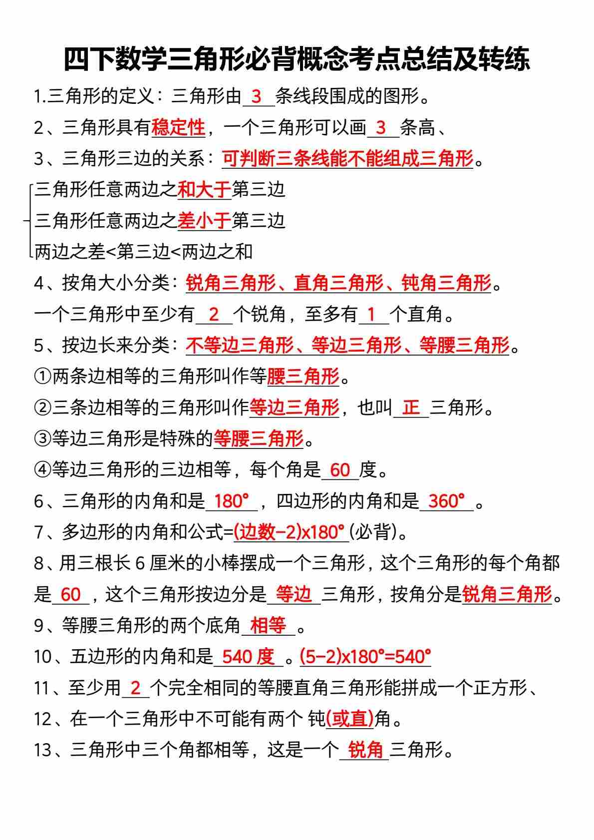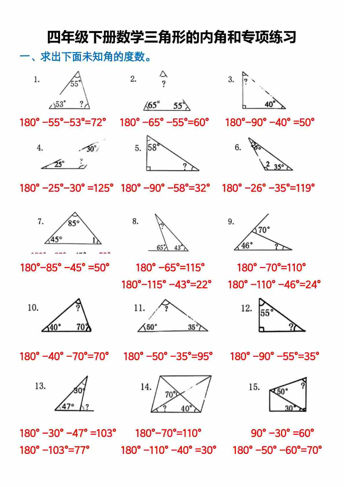 四(下)数学【满分必刷应用题《三角形》专项训练】
