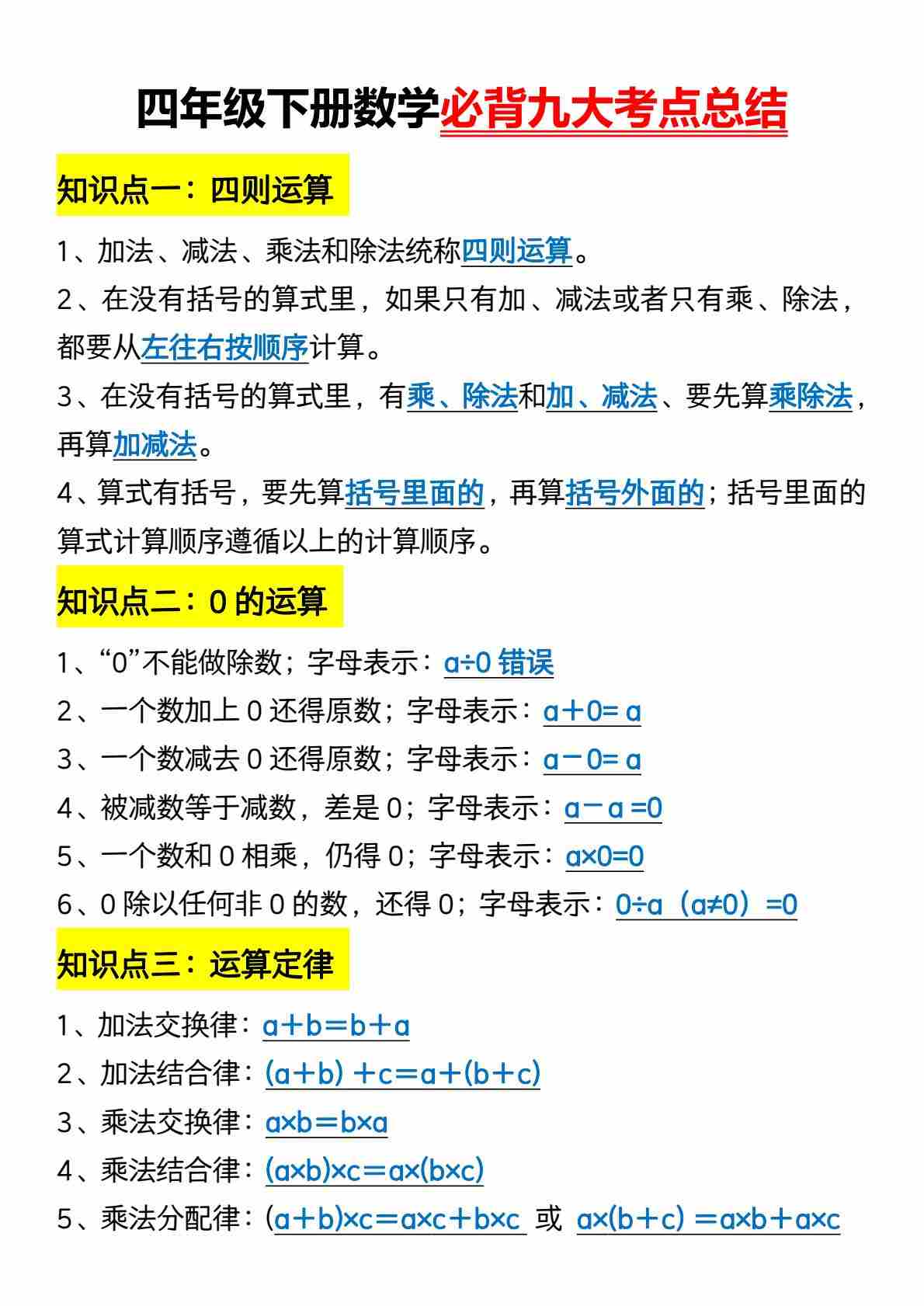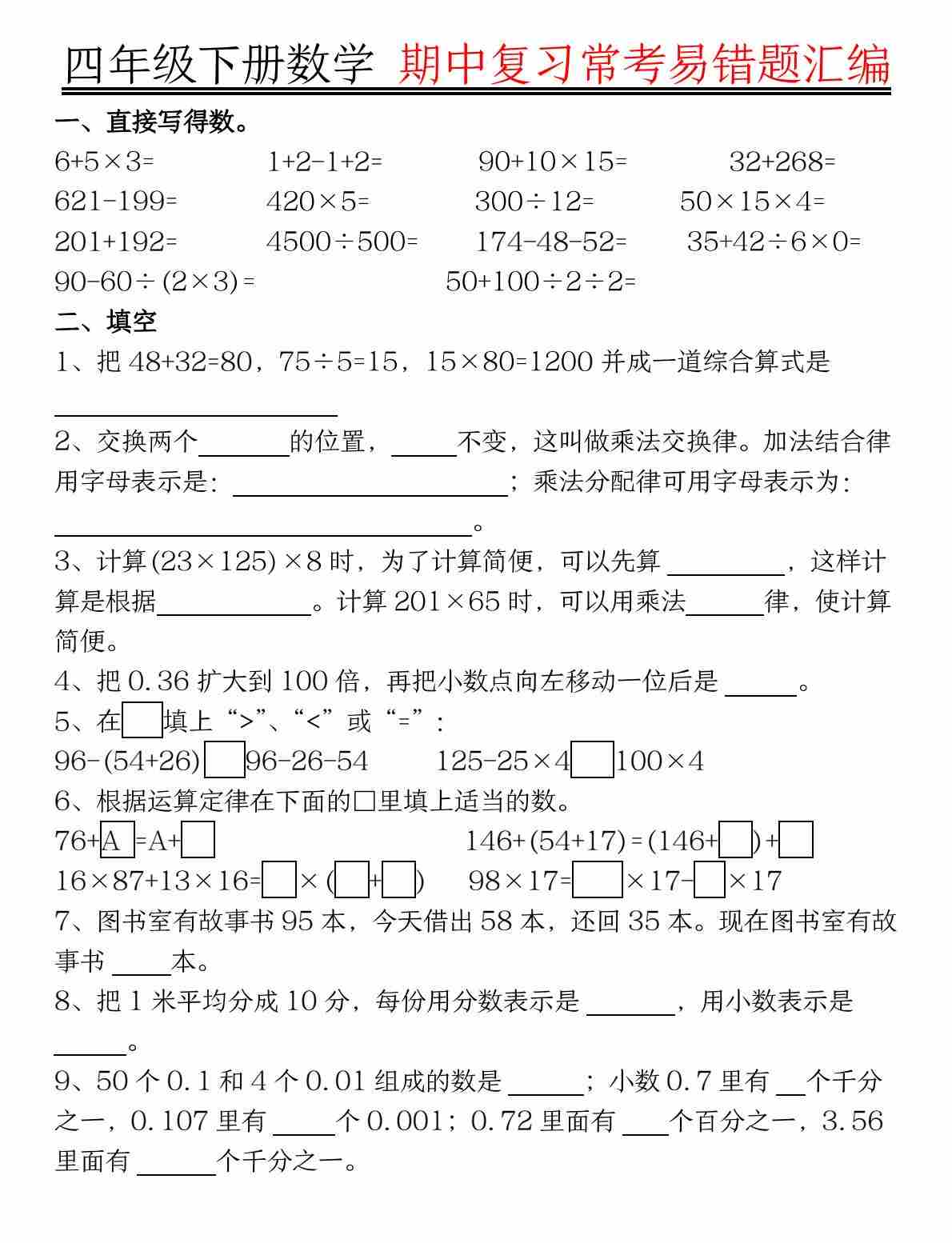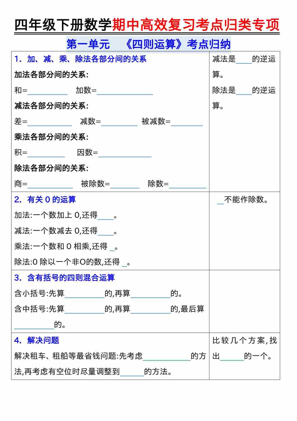四(下)数学【期中高效复习考点归类专项(空白)】