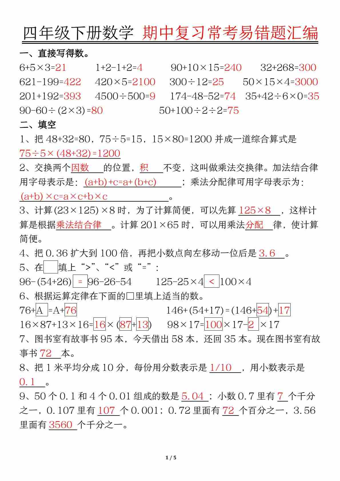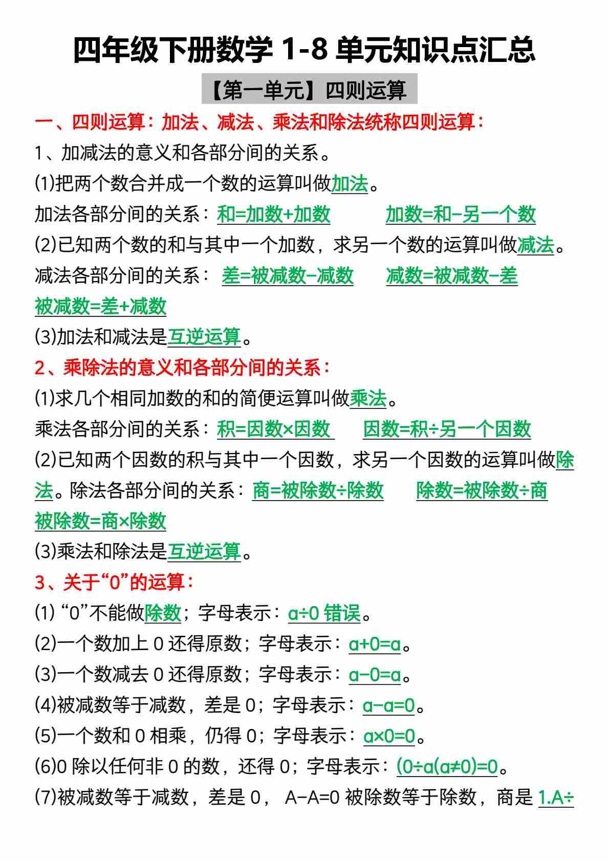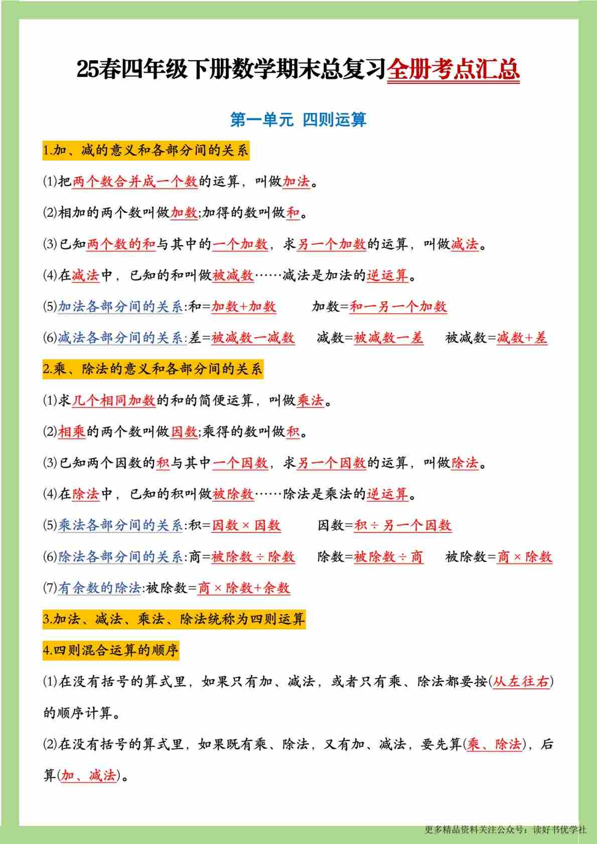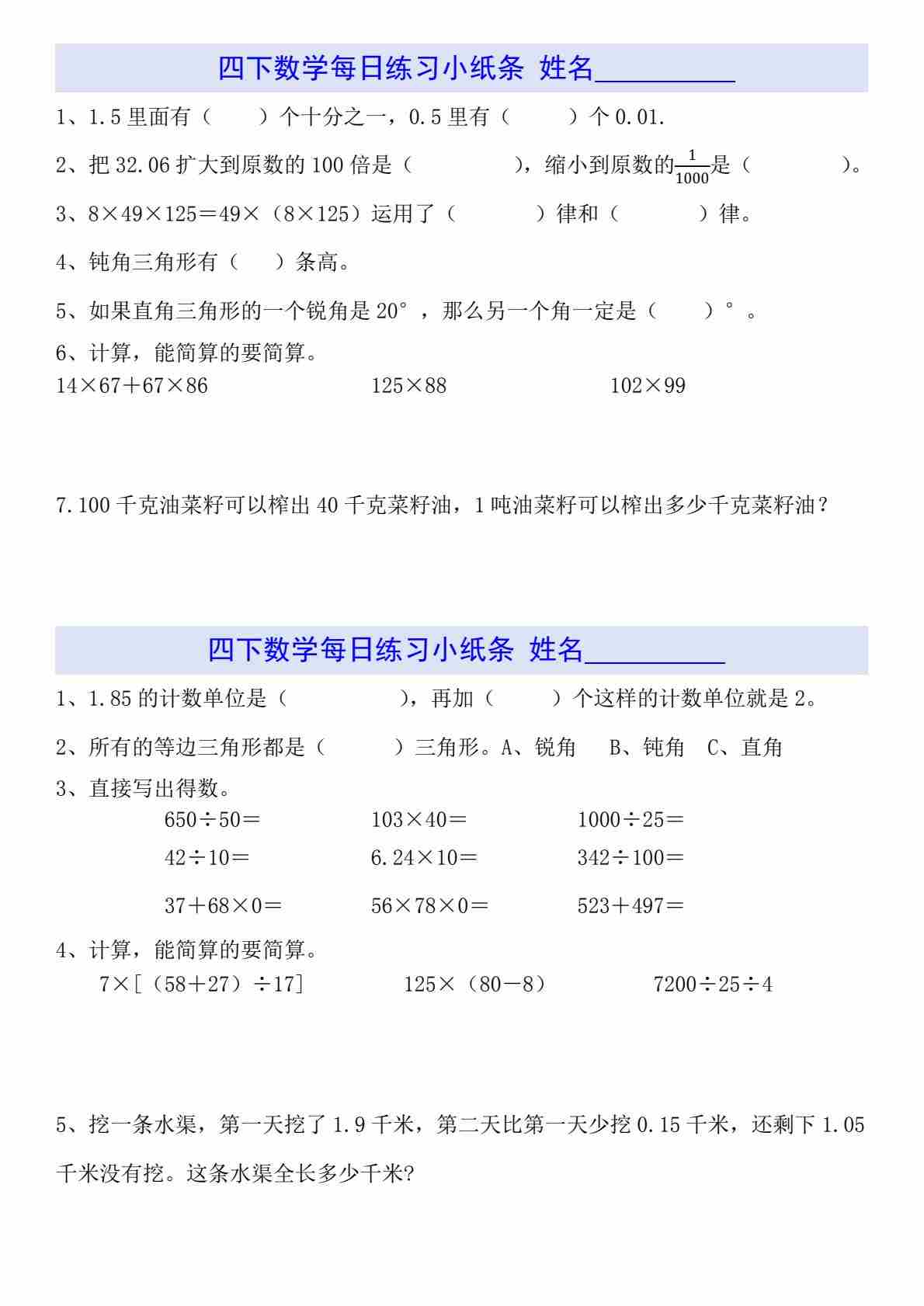 四(下)数学【期中高效复习考点归类专项(空白)】