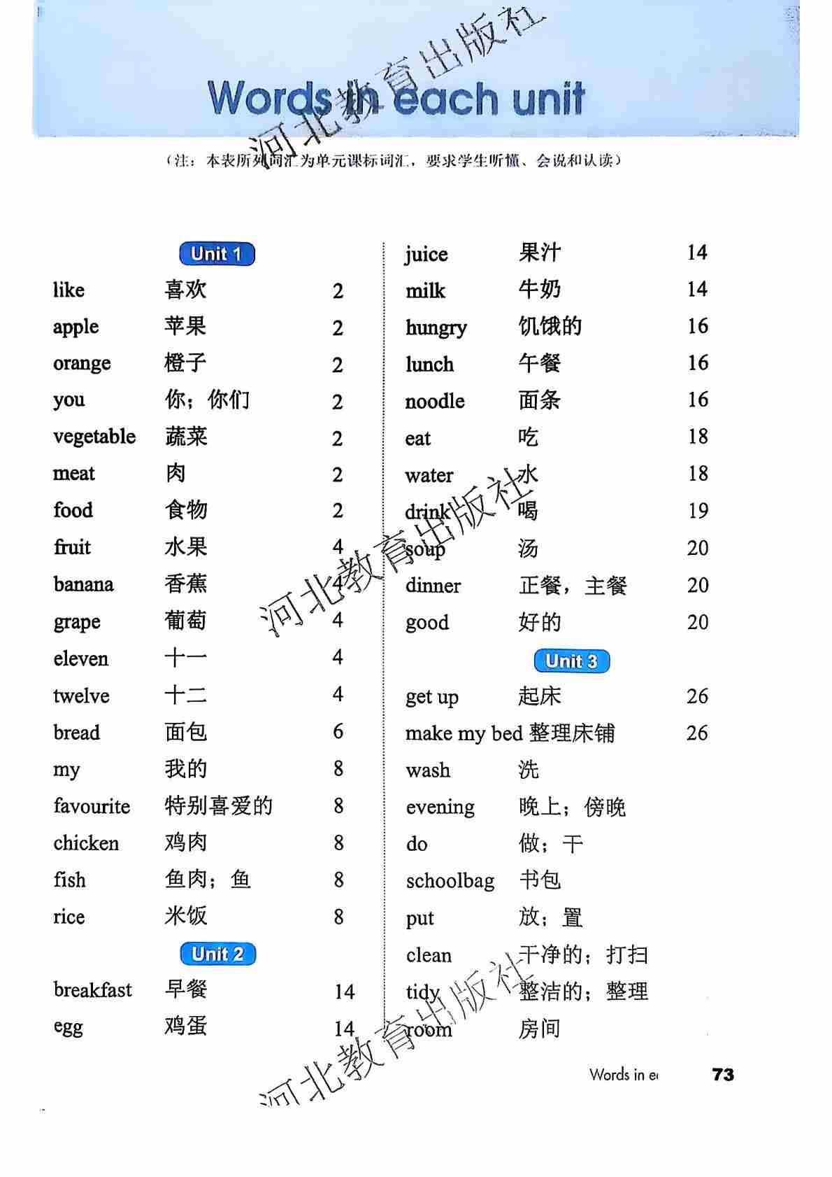 2025春三下冀教版英语单词表