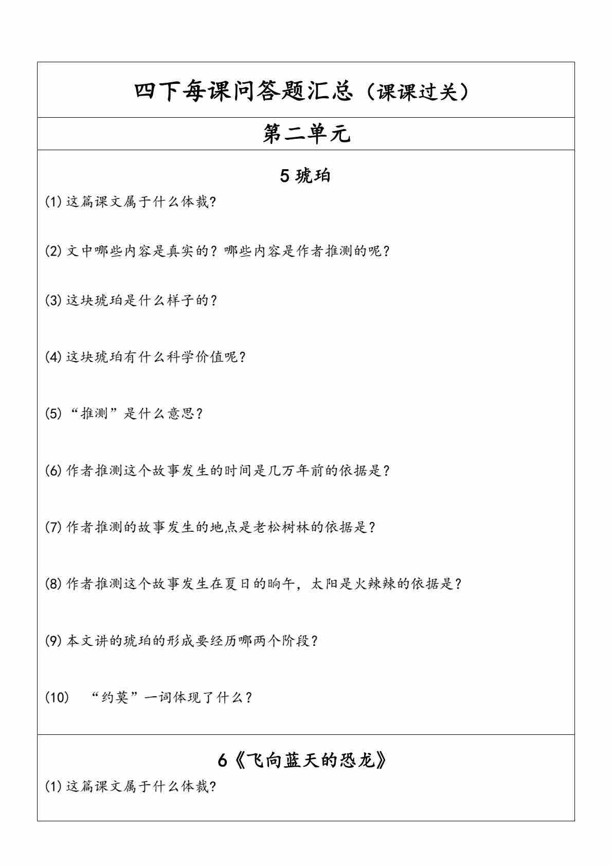四(下)语文【每课问答题汇总(第2单元)】