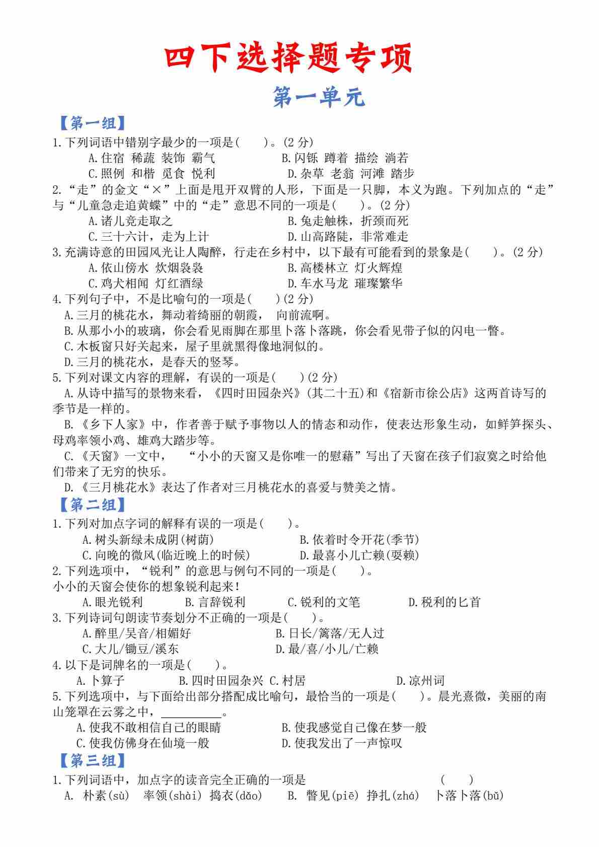 四(下)语文【选择题专项】