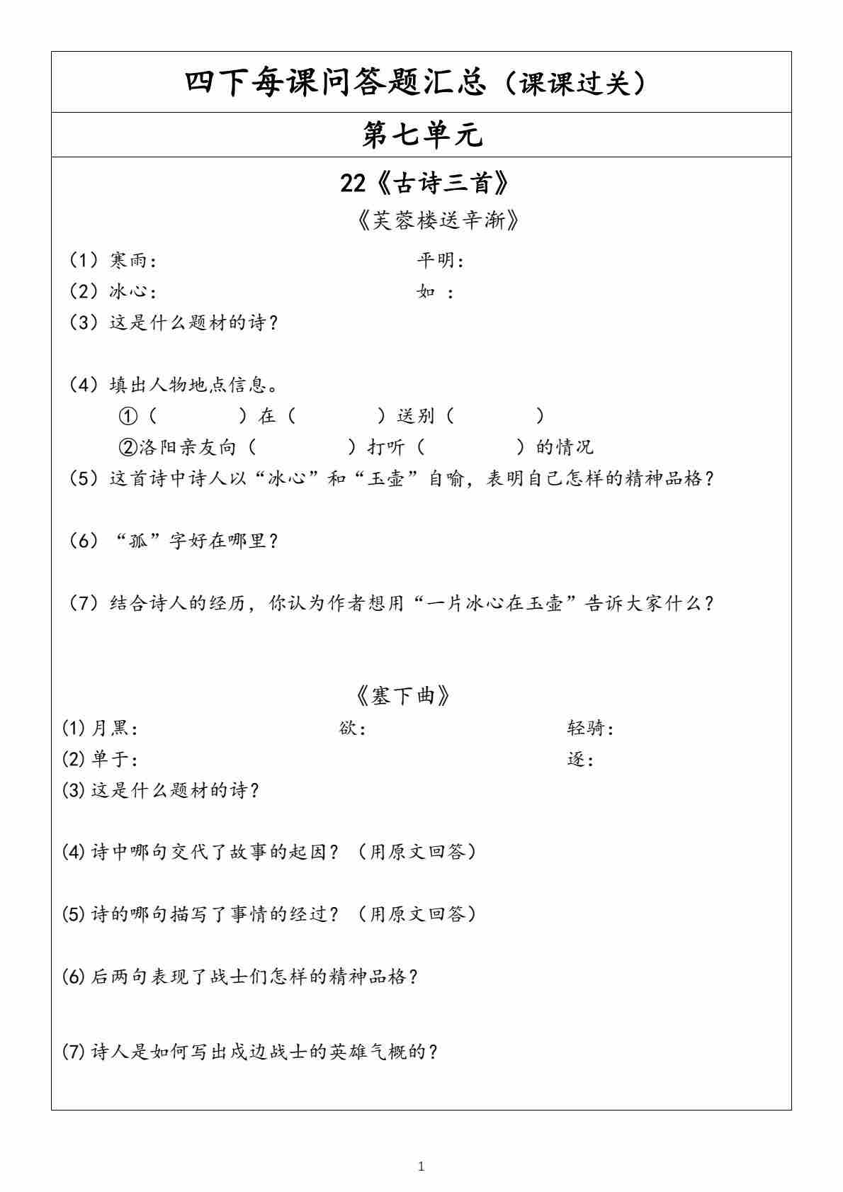 四(下)语文【每课问答题汇总(第7单元)】、