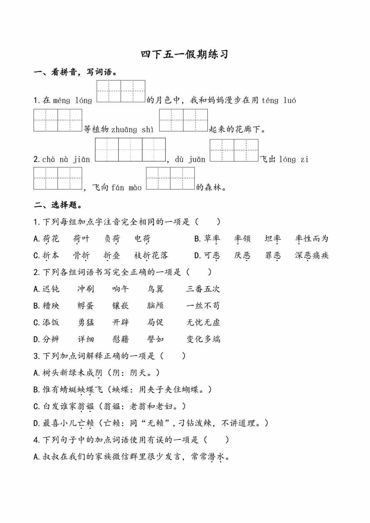 四(下)语文五一假期练习