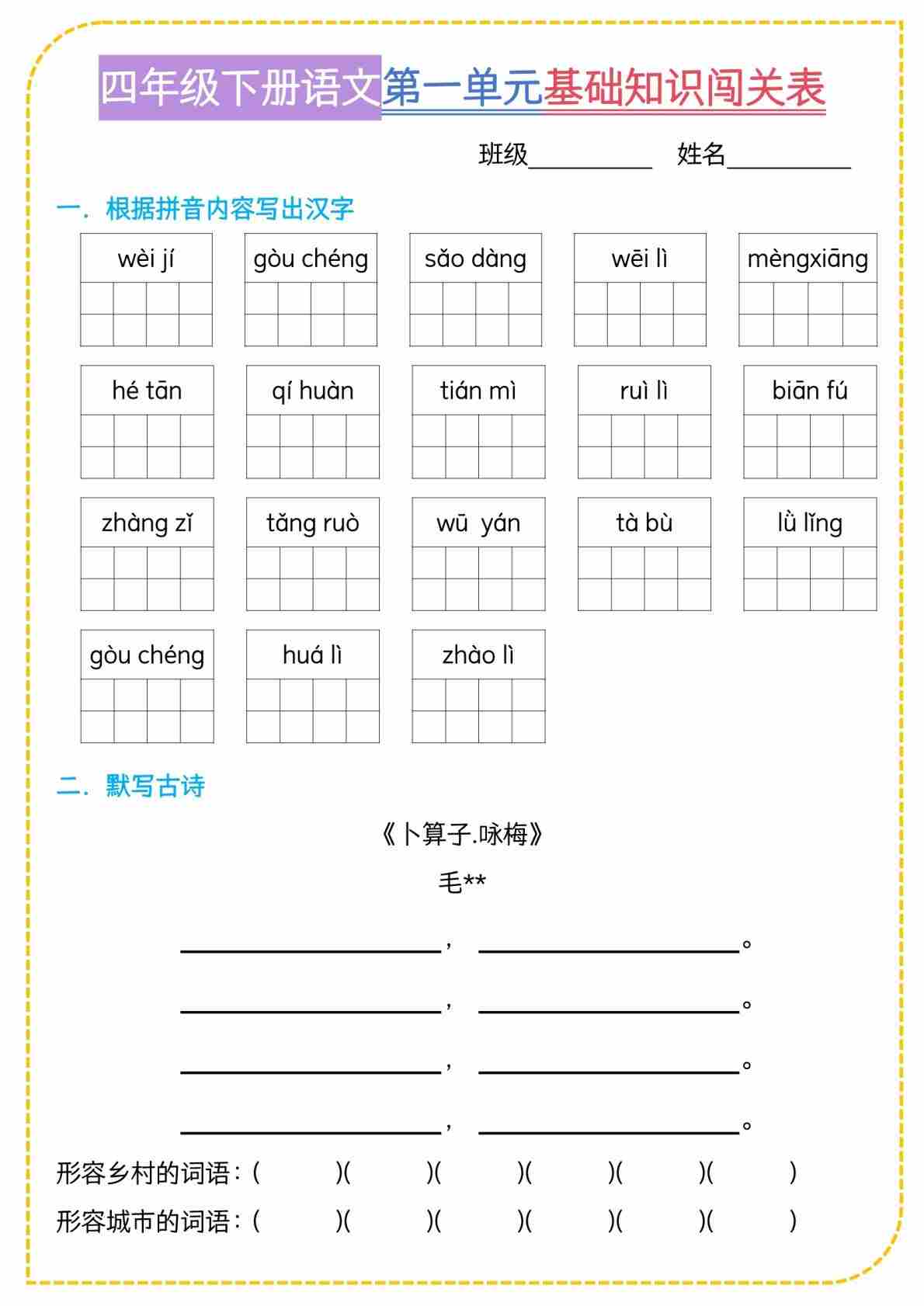 四(下)语文基础知识闯关表