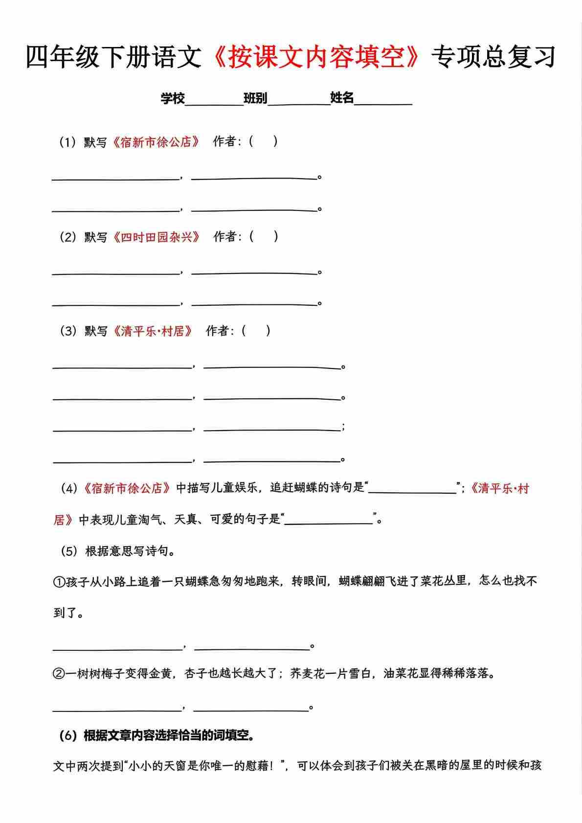 四(下)语文【期末专项练习-快乐读书吧(空白)】