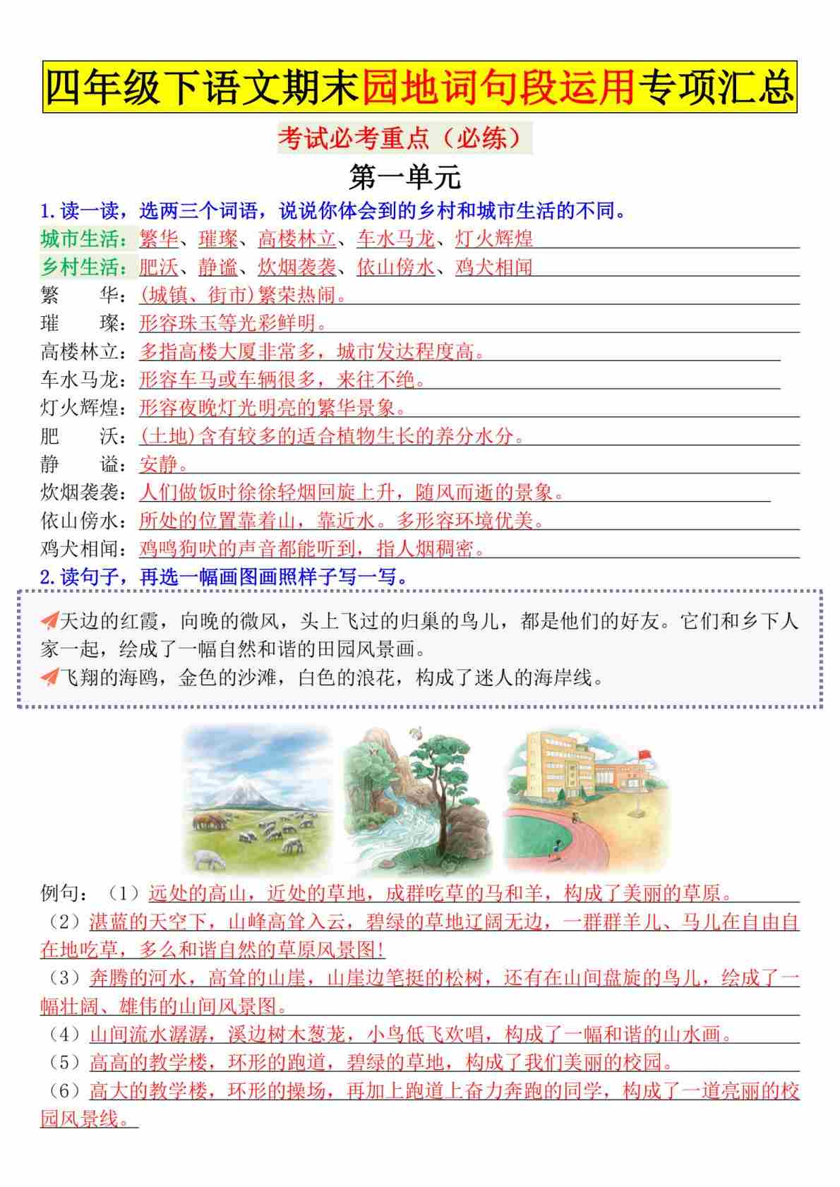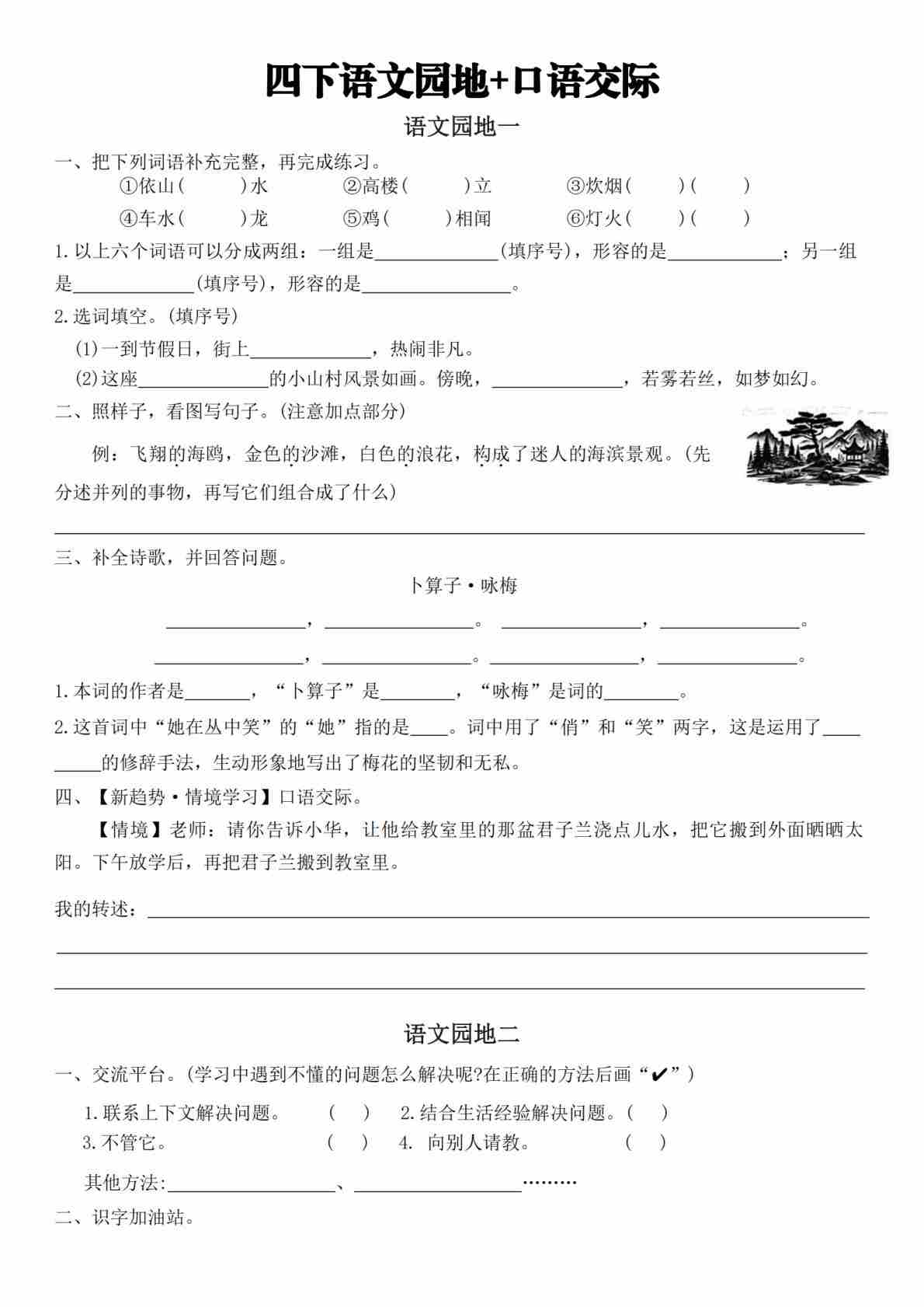 四(下)语文【期末复习专项练习语文园地与口语交际-含答案】