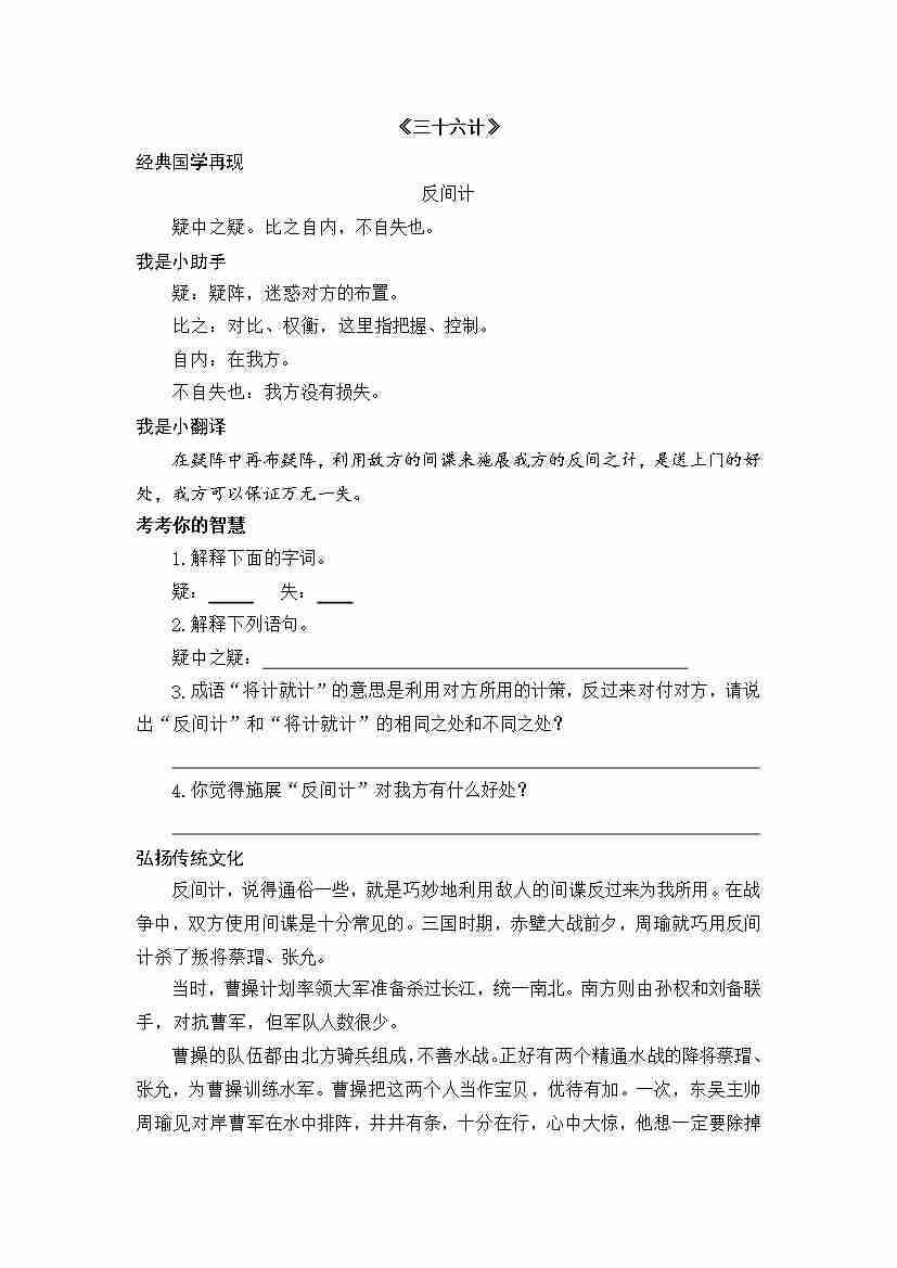 四年级下册国学阅读之《三十六计》