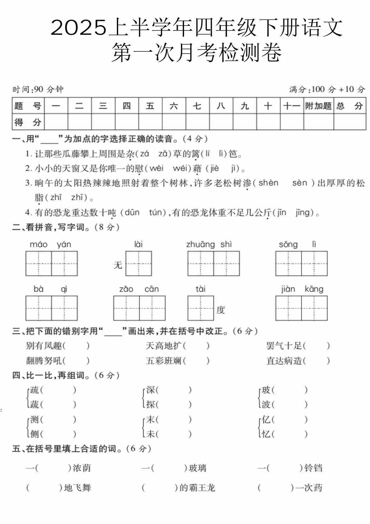四(下)语文【第1次月考试卷1】