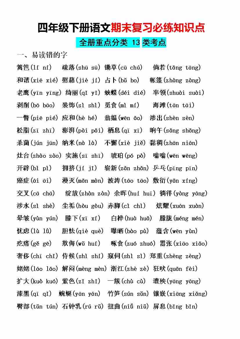 四(下)语文期末复习必练知识点(1)
