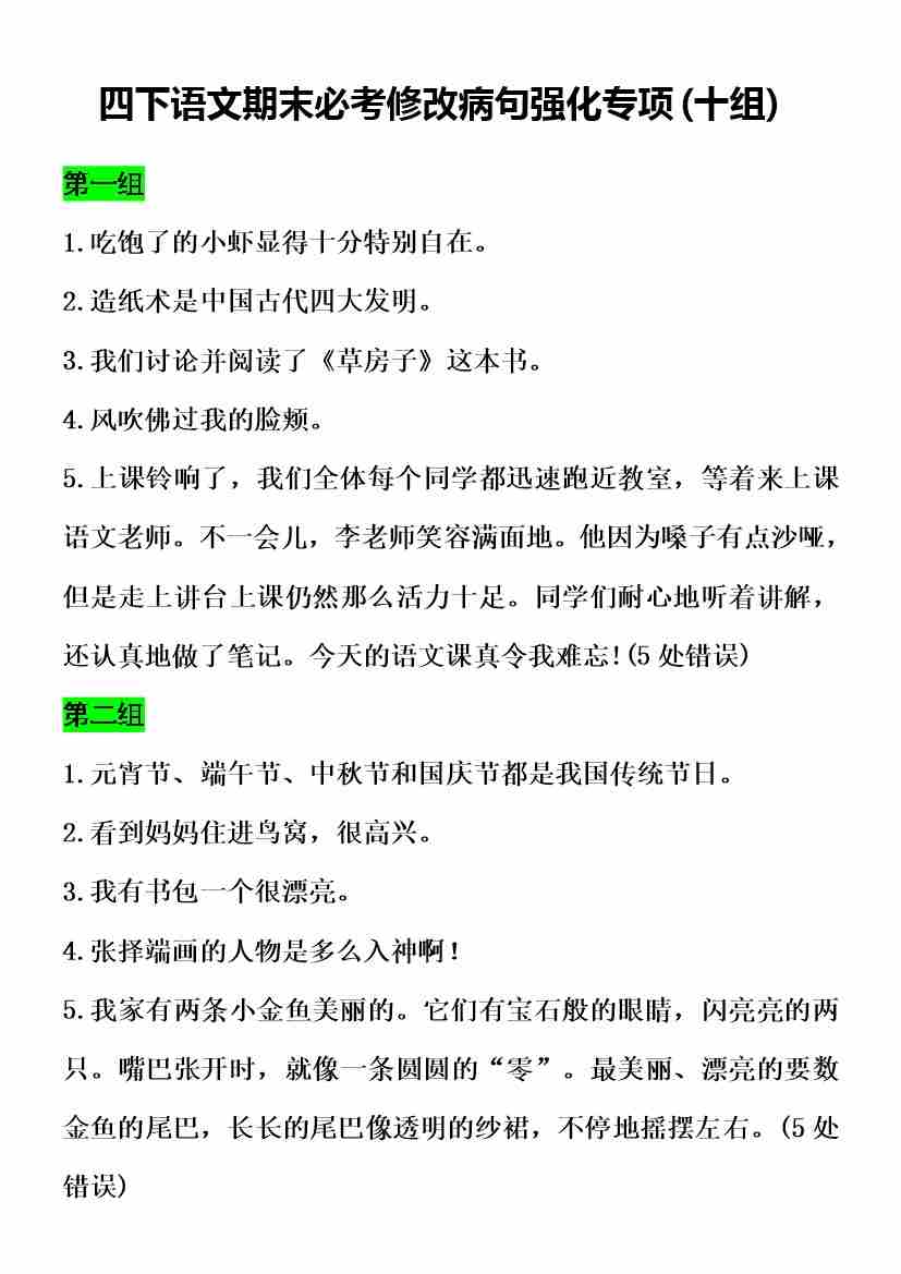 四(下)语文期末复习必考修改病句强化专项