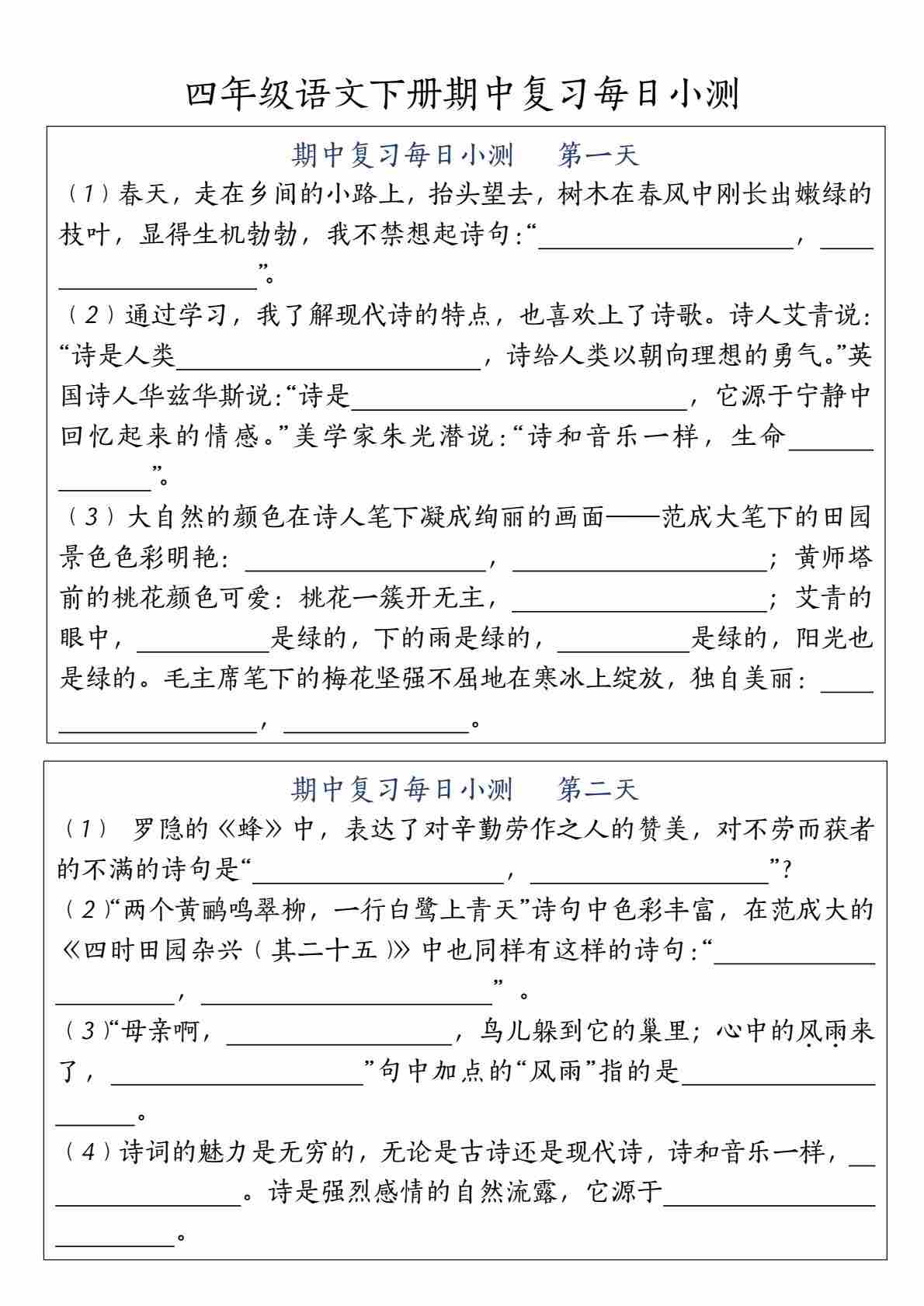 【情境默写·期中情境默写古诗词日积月累专项】四下语文