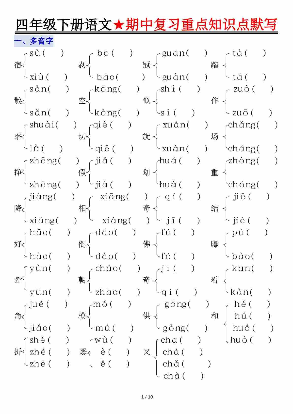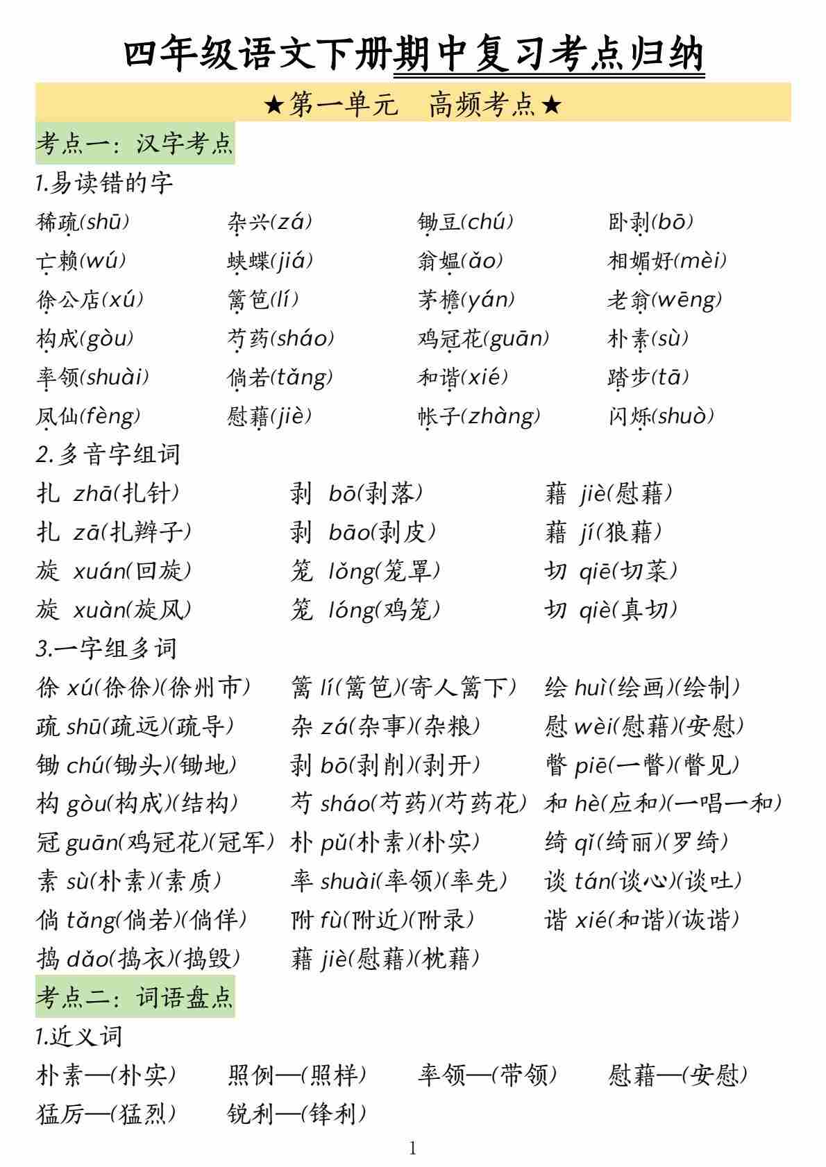 【期末总复习重点知识点归纳整理-共29页】四下语文