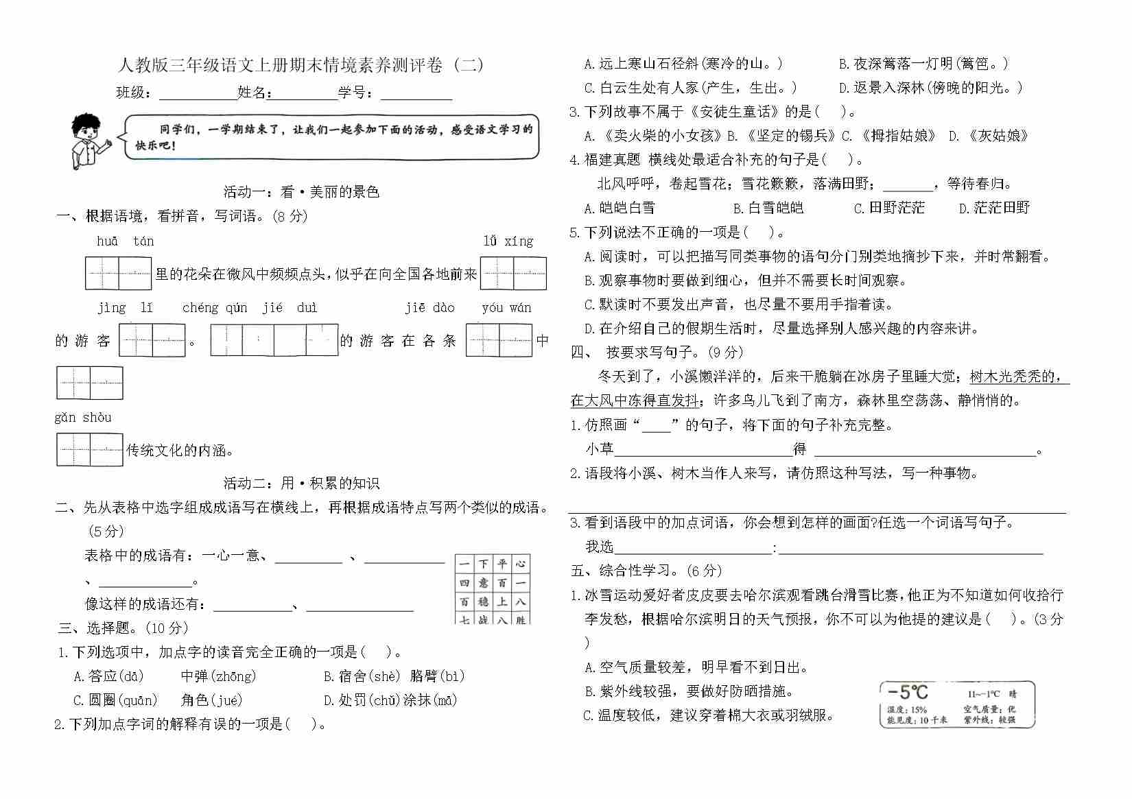 三上语文期末情境素养测评卷 (二)(含答案)