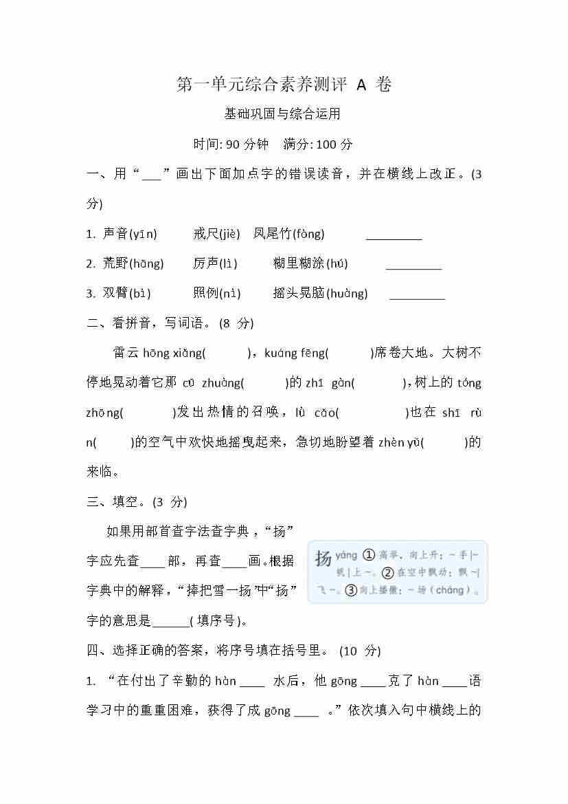 第一单元综合素养测评A卷(含答案)