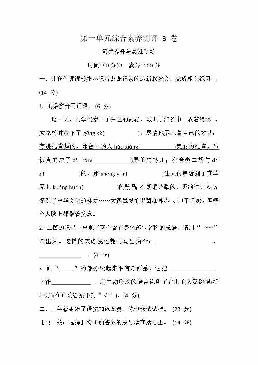 第一单元综合素养测评B卷(含答案)