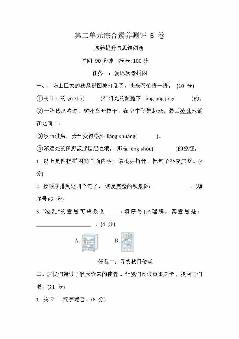 第二单元综合素养测评B卷 (含答案)