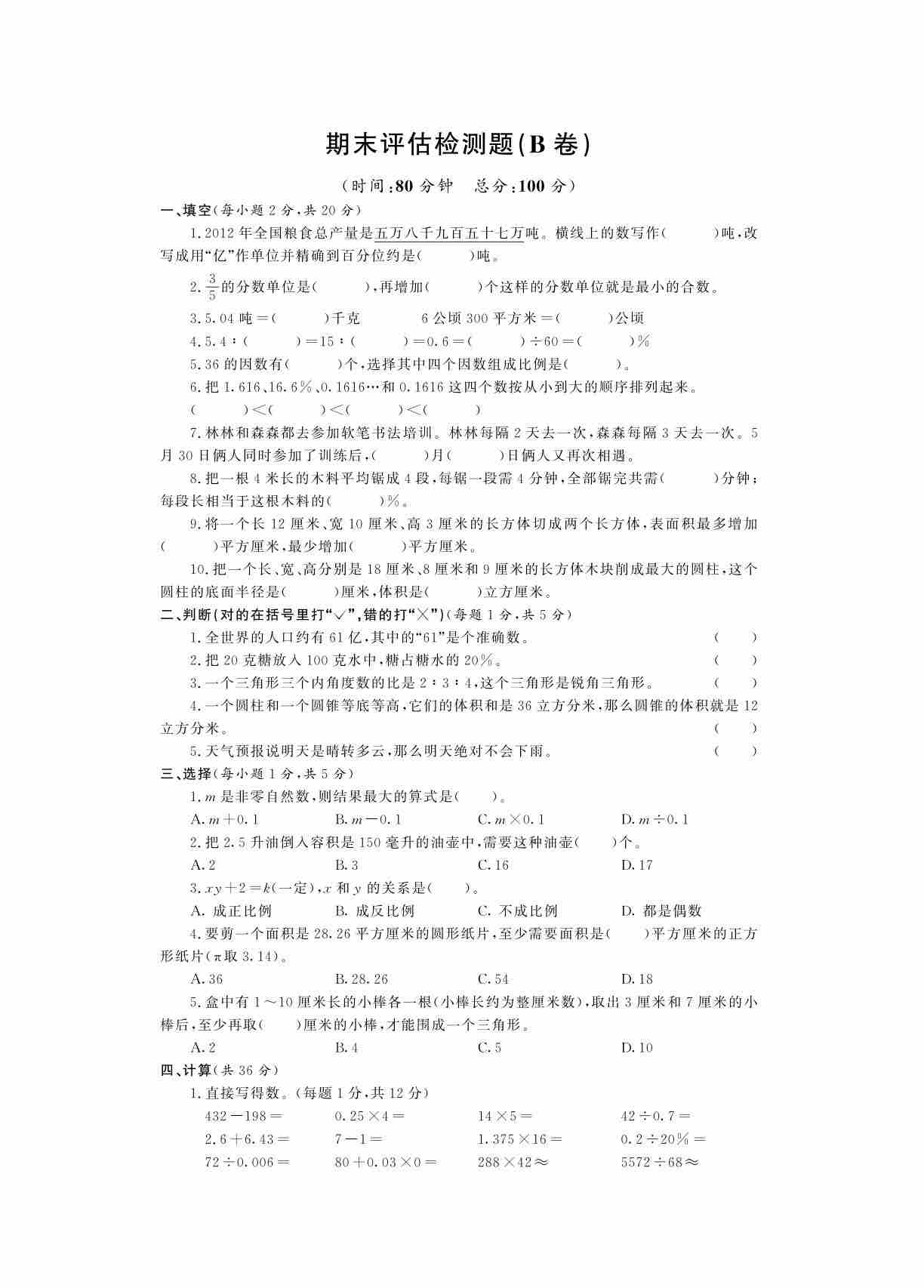 【真题优选】山东青岛金门路小学青岛版(五四制)五年级数学下册期末测试卷B卷(PDF,有答案)