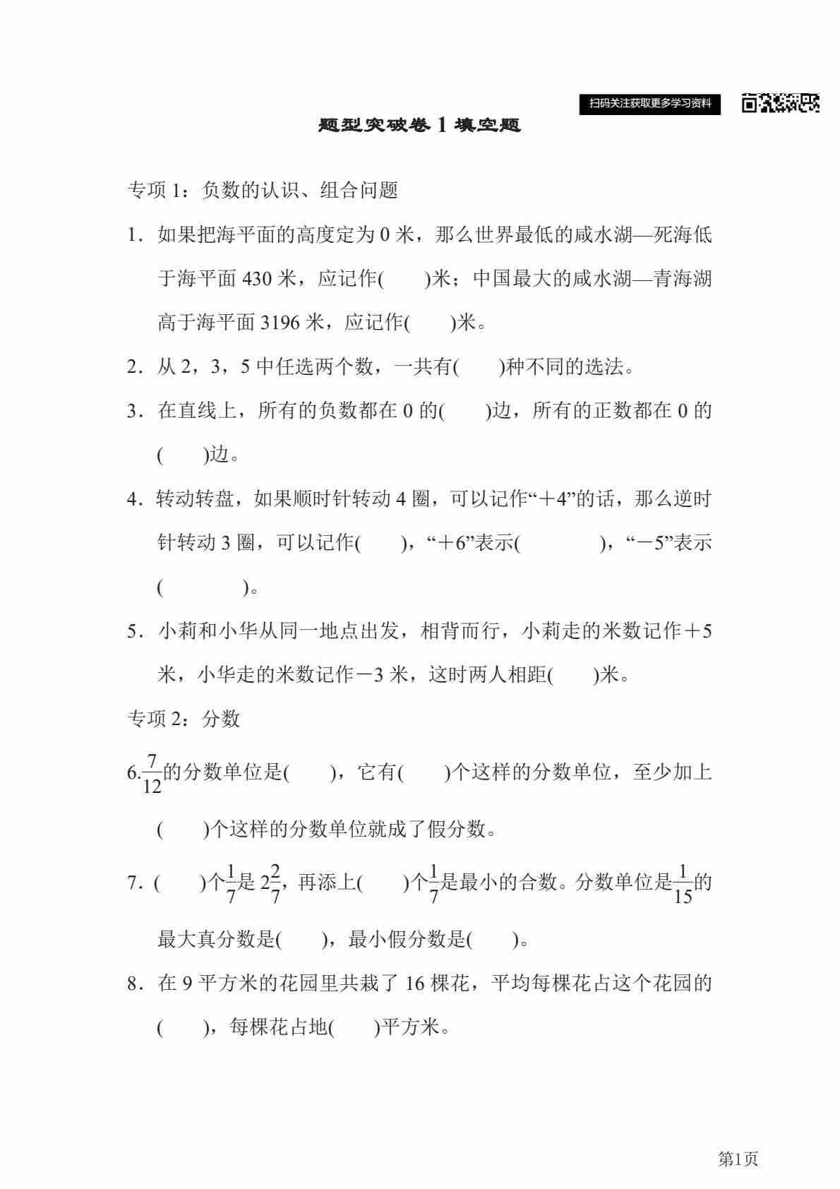 五下青岛五四版数学【重难点突破卷(共43页附答案)】