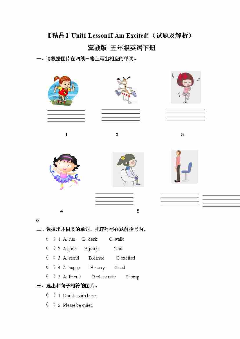 冀教版 五年级下册英语-Unit1 Lesson1 I Am Excited! (word,含答案和解析)