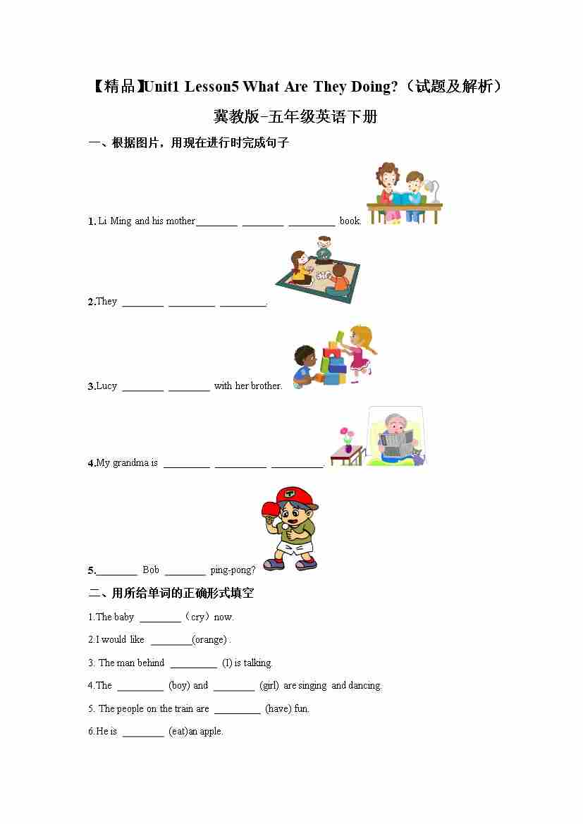 冀教版 五年级下册英语-Unit1 Lesson5 What Are They Doing (word,含答案和解析)