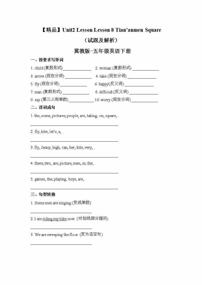 冀教版 五年级下册英语-Unit2 Lesson 8 Tian'anmen Square (word,含答案和解析)