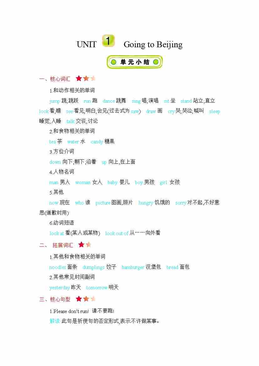 冀教版五下 Unit 1 知识清单