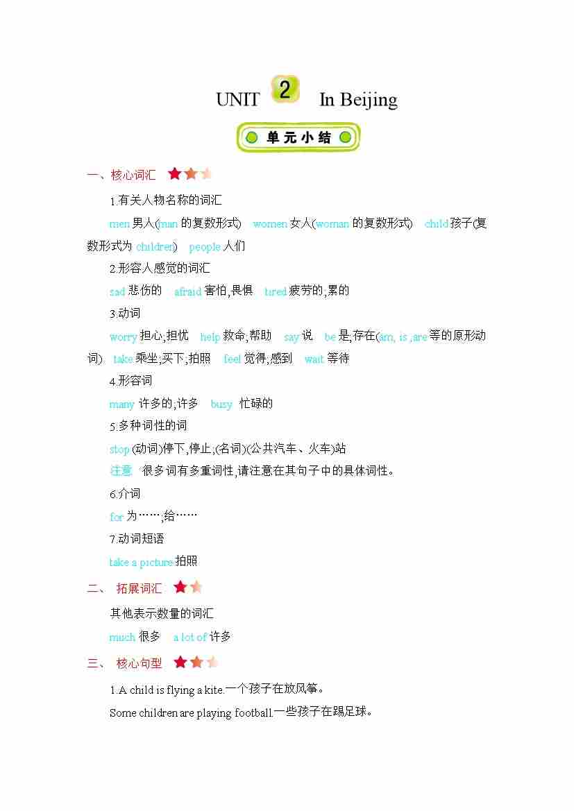 冀教版五下 Unit 2 知识清单
