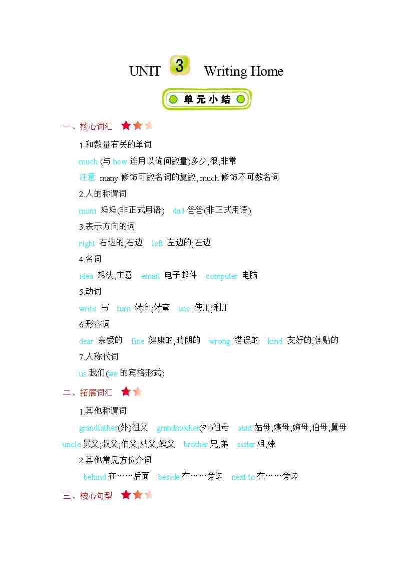 冀教版五下 Unit 3 知识清单