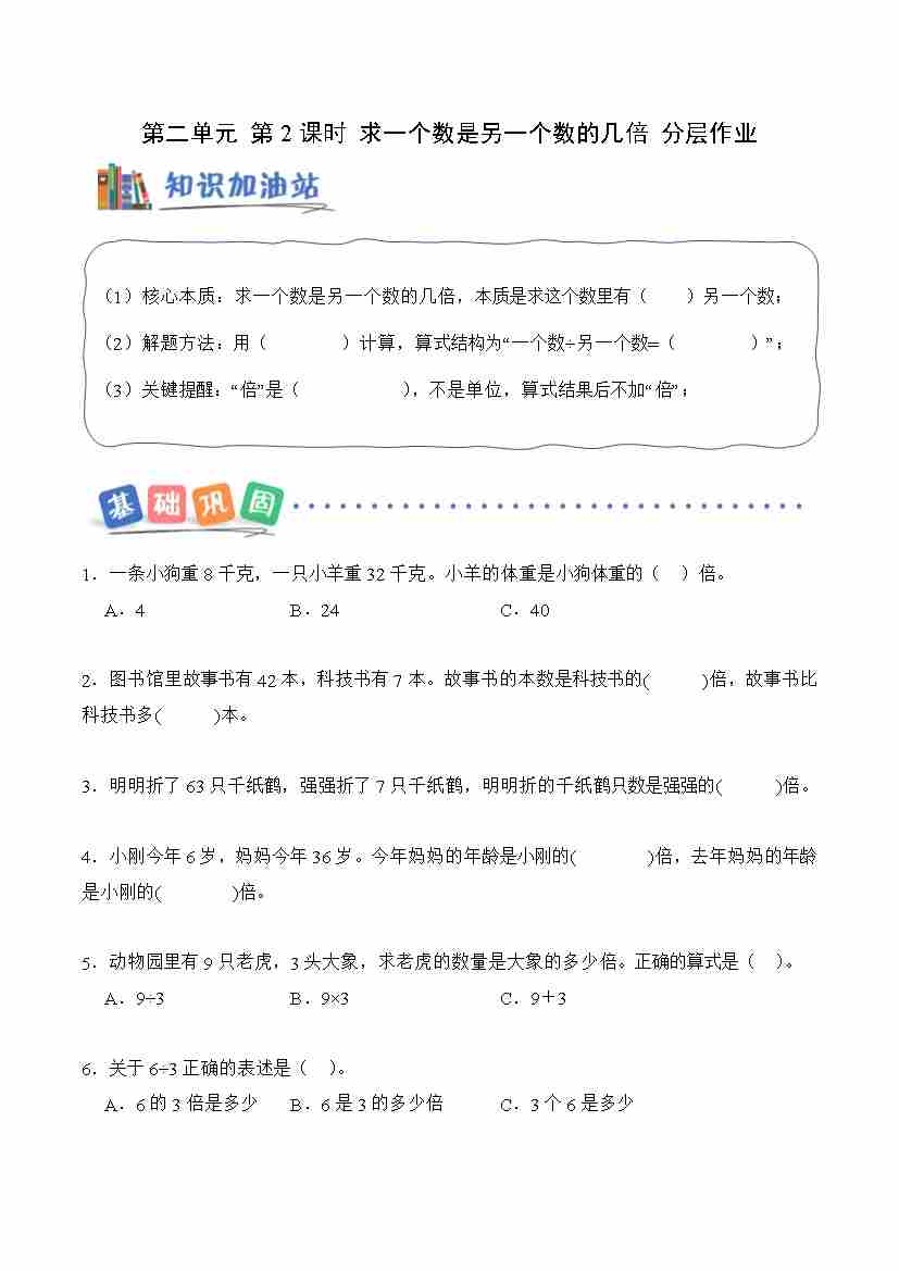 第二单元第2课时 求一个数是另一个数的几倍(分层作业)