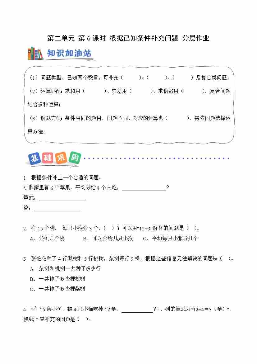 第二单元第6课时 根据已知条件补充问题(分层作业)