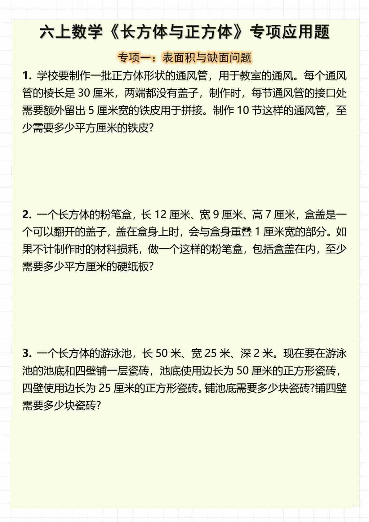 六上数学《长方体与正方体》专项应用题(含答案8页)