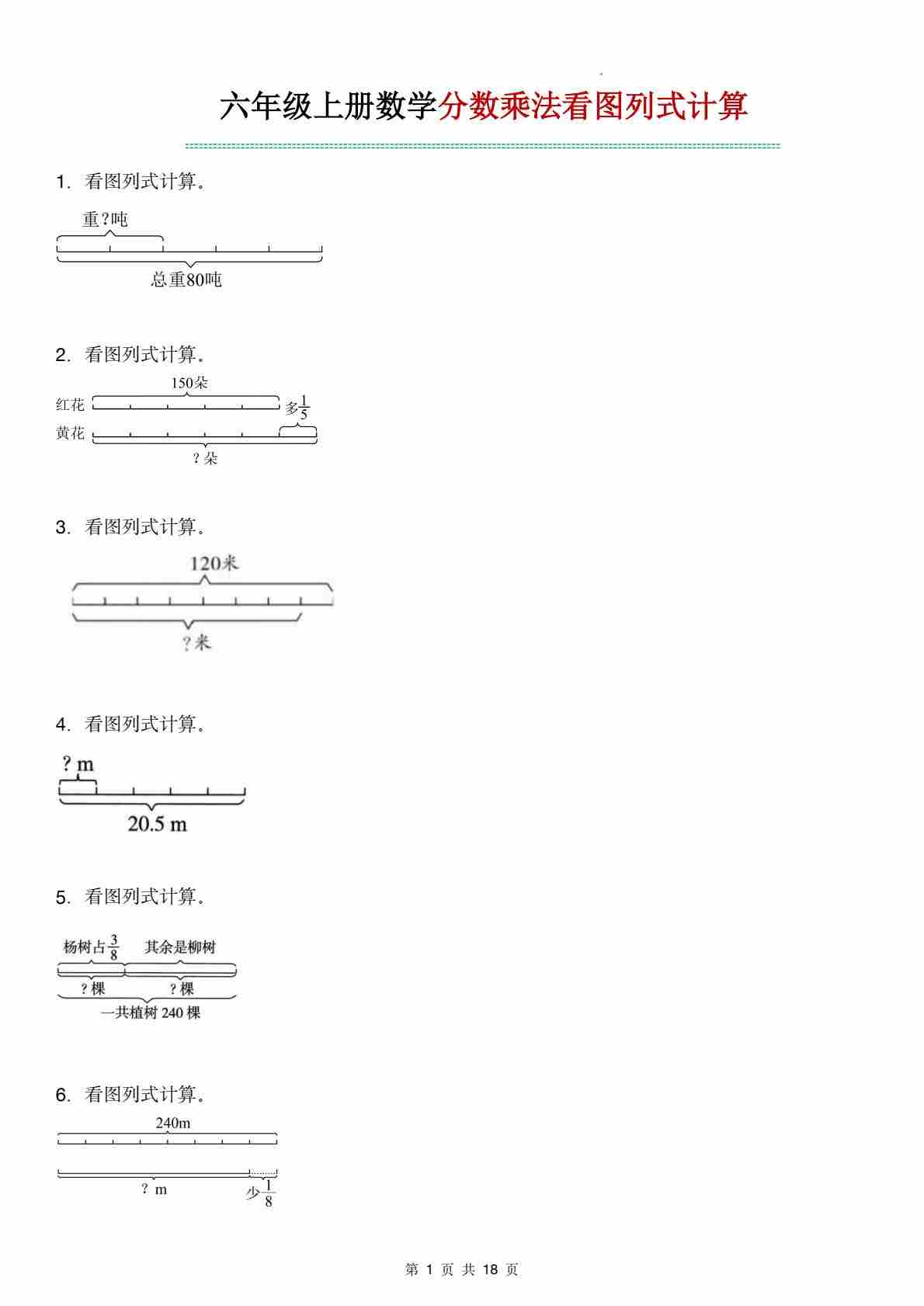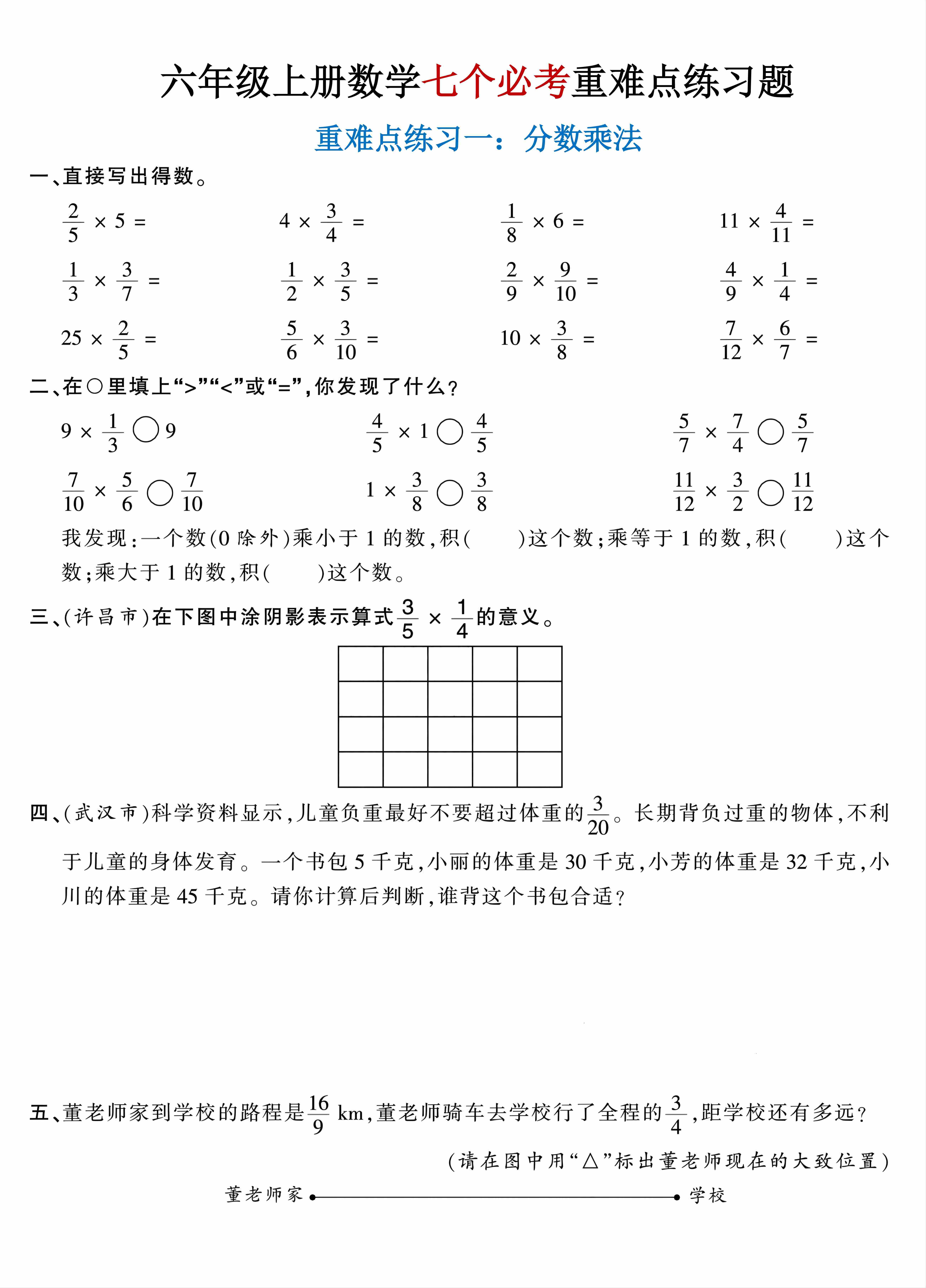 六上数学分数乘法解决问题专项训练(空白+答案10页)