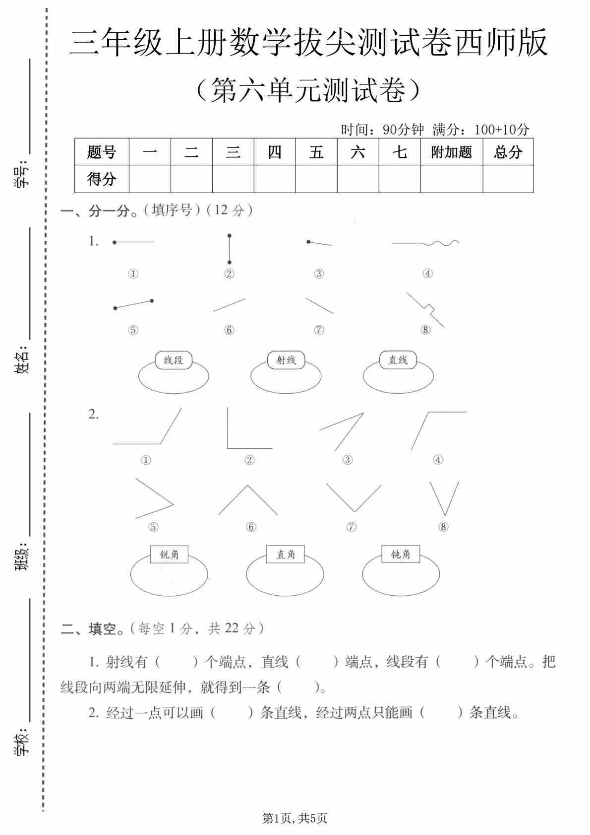 三上人教版数学【第六单元拔尖测试卷1】