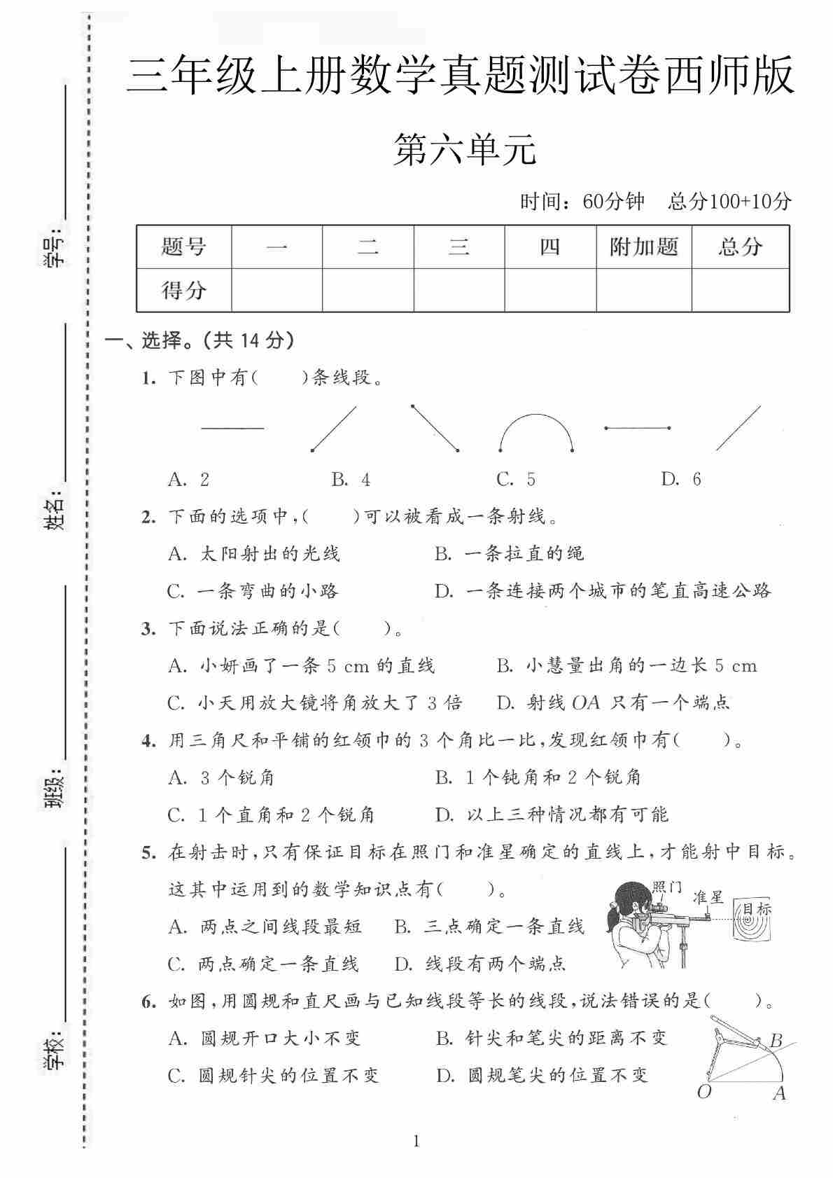 三上西师版数学【第六单元拔尖测试卷】