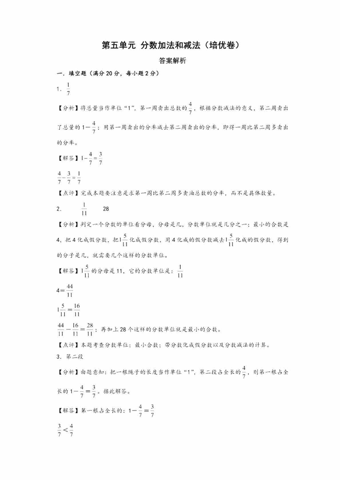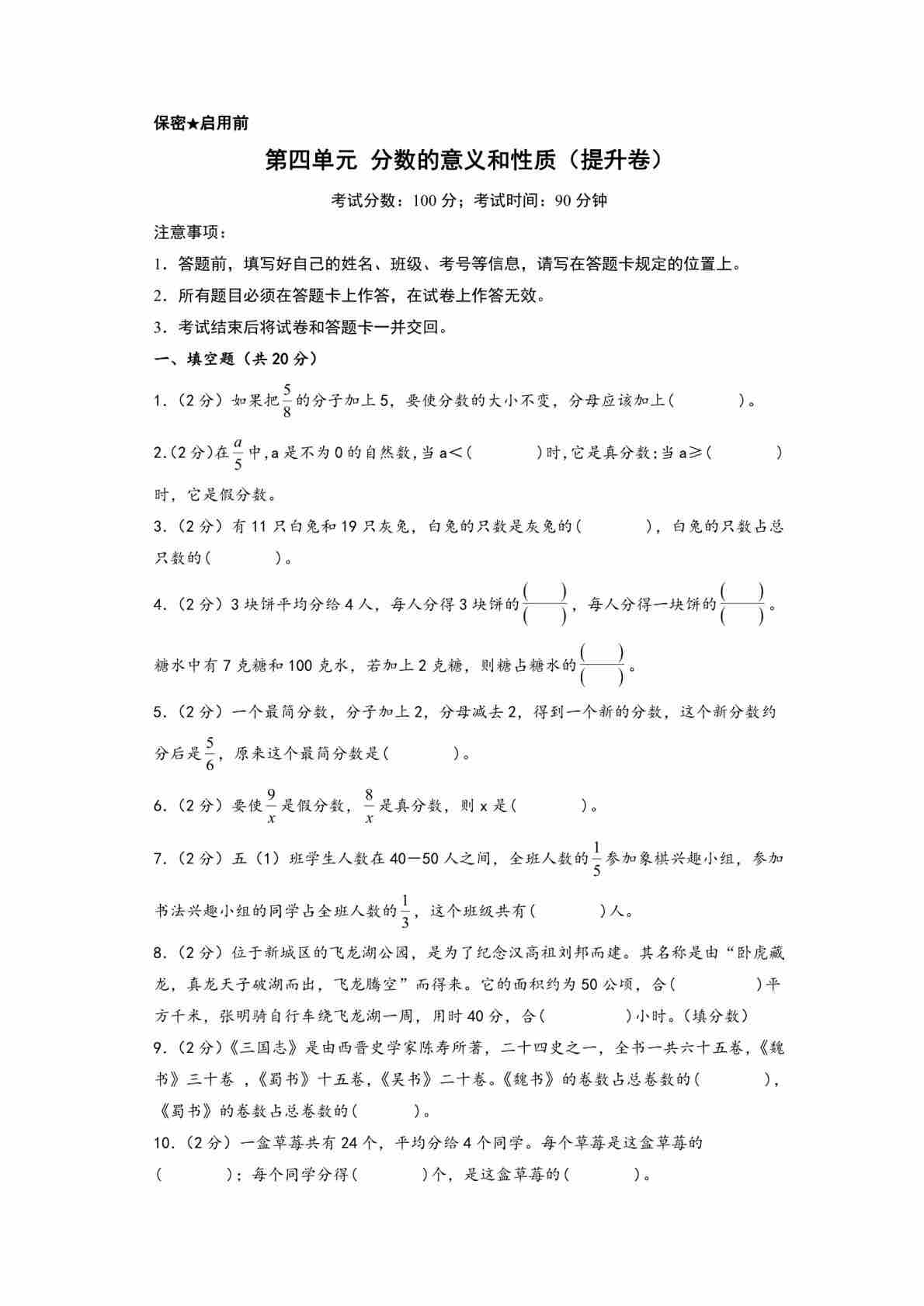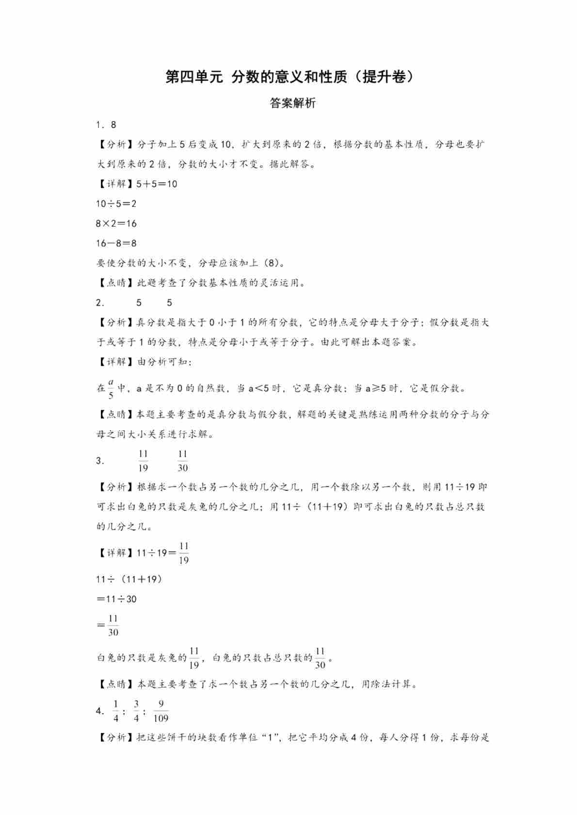 第四单元 分数的意义和性质(提升)(答案解析)_
