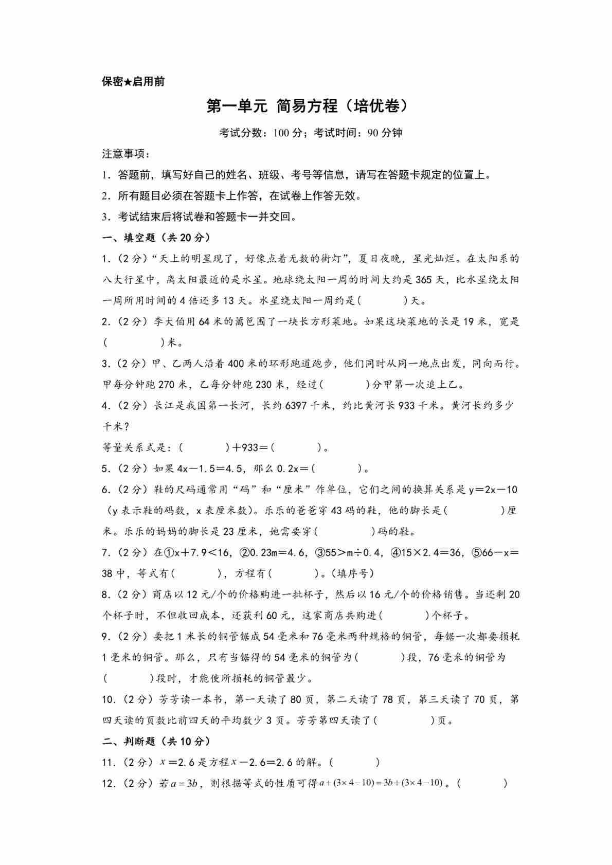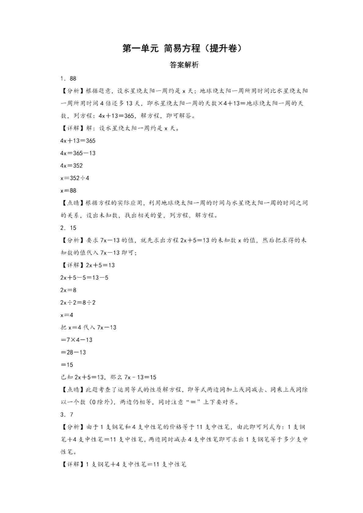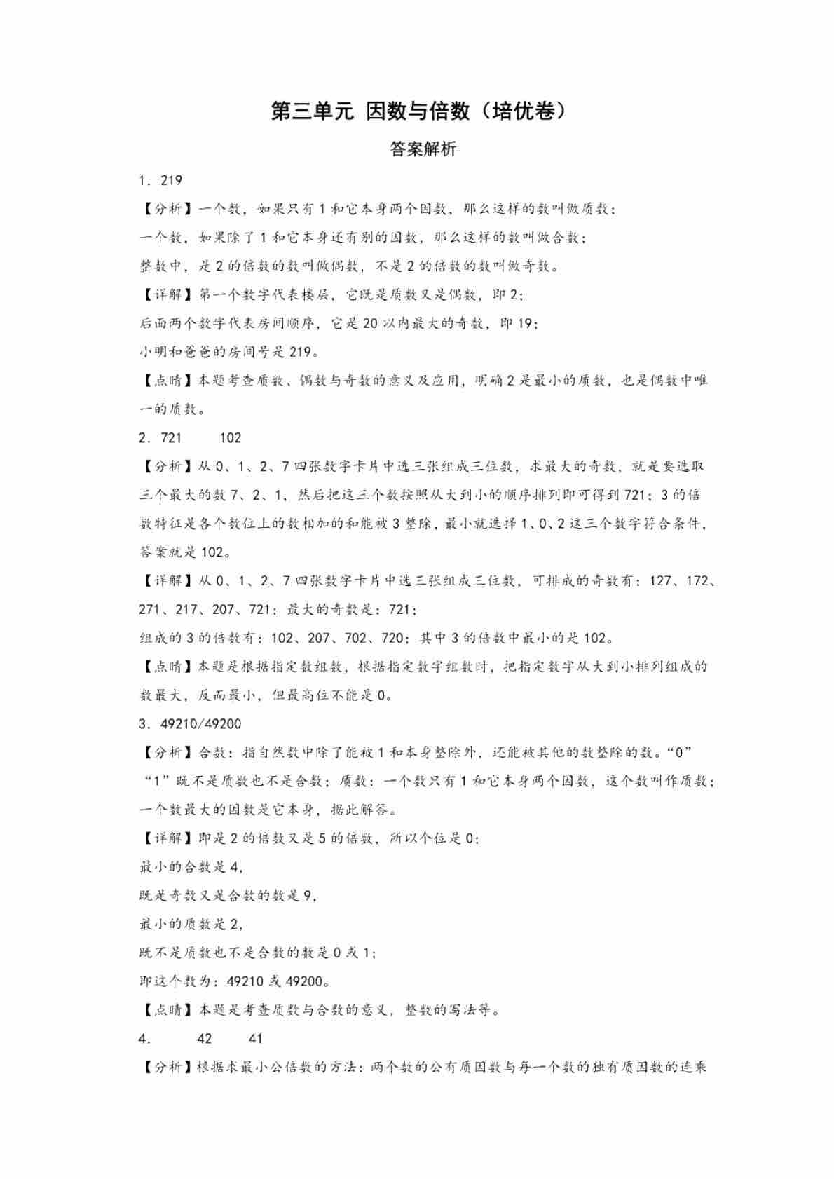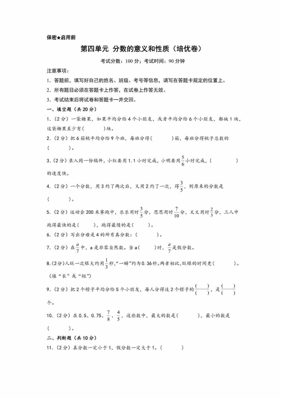 第四单元 分数的意义和性质(提升)(答案解析)_