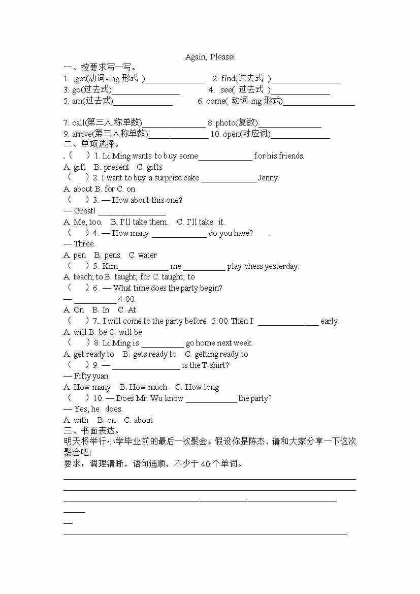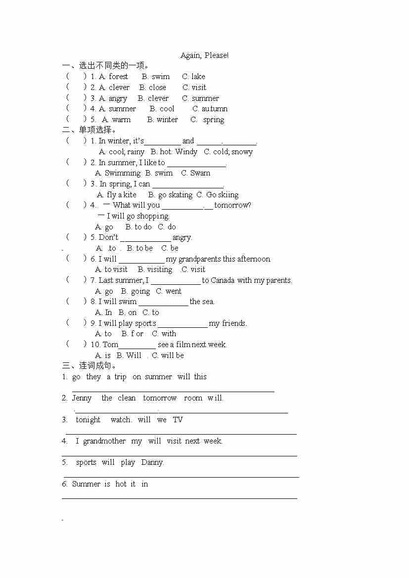 六下丨英语 Unit3 Again, Please!(冀教版)