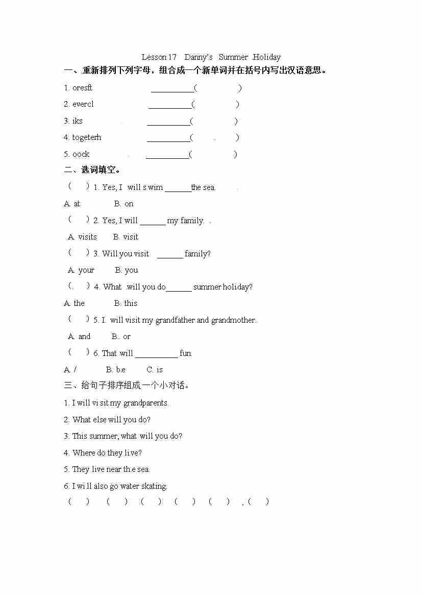 六下丨英语 Unit3 Lesson 17(冀教版)