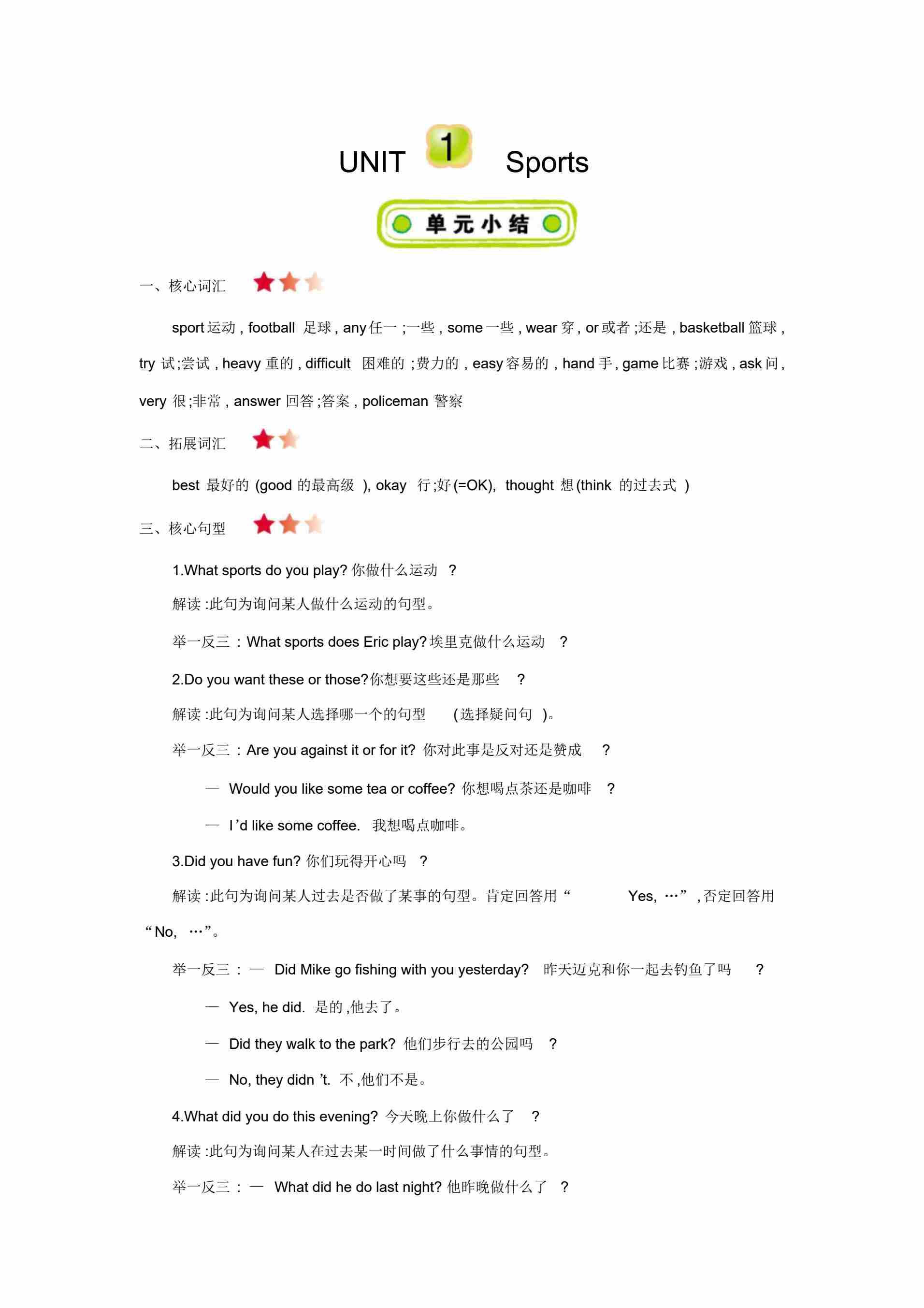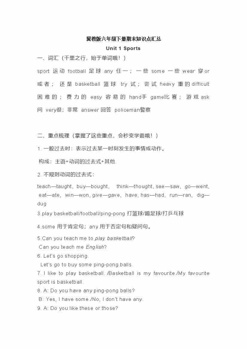 六下丨英语 全册知识点(冀教版)