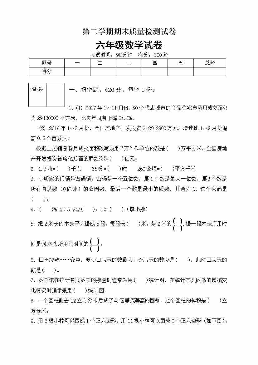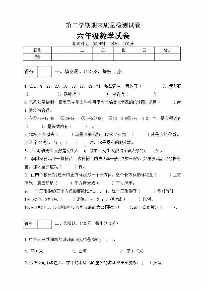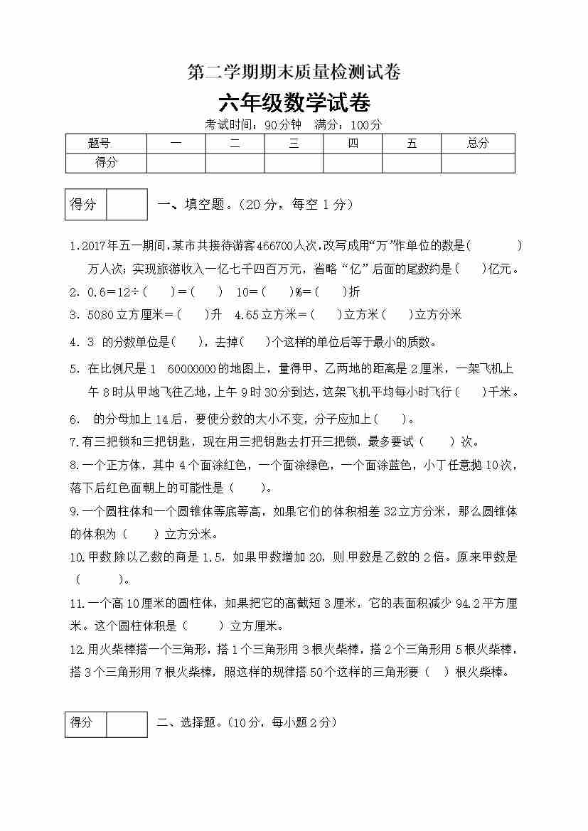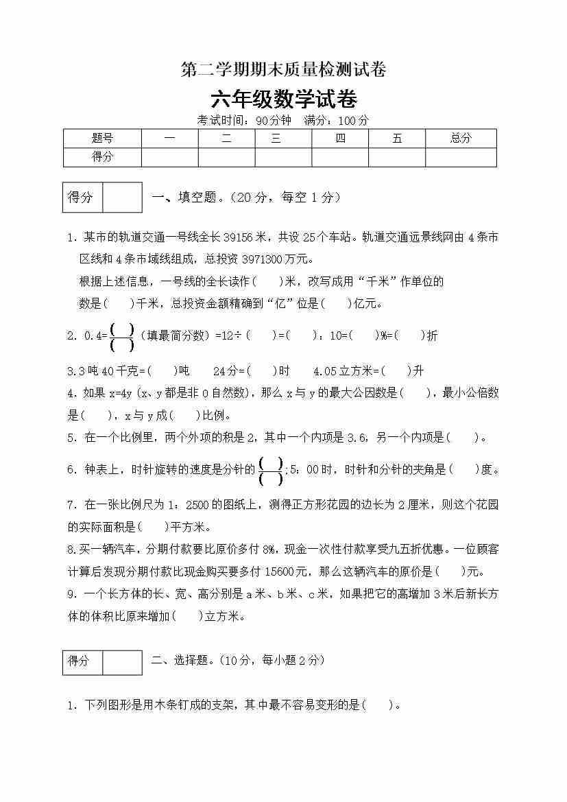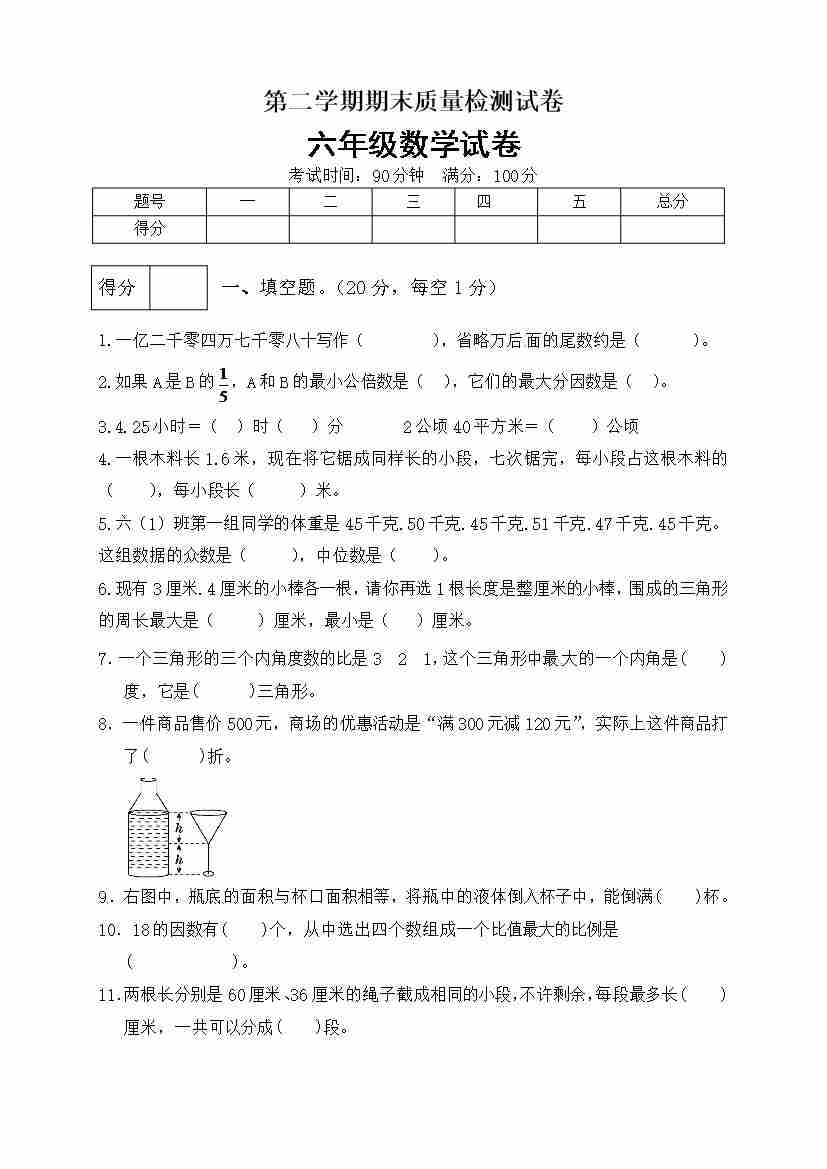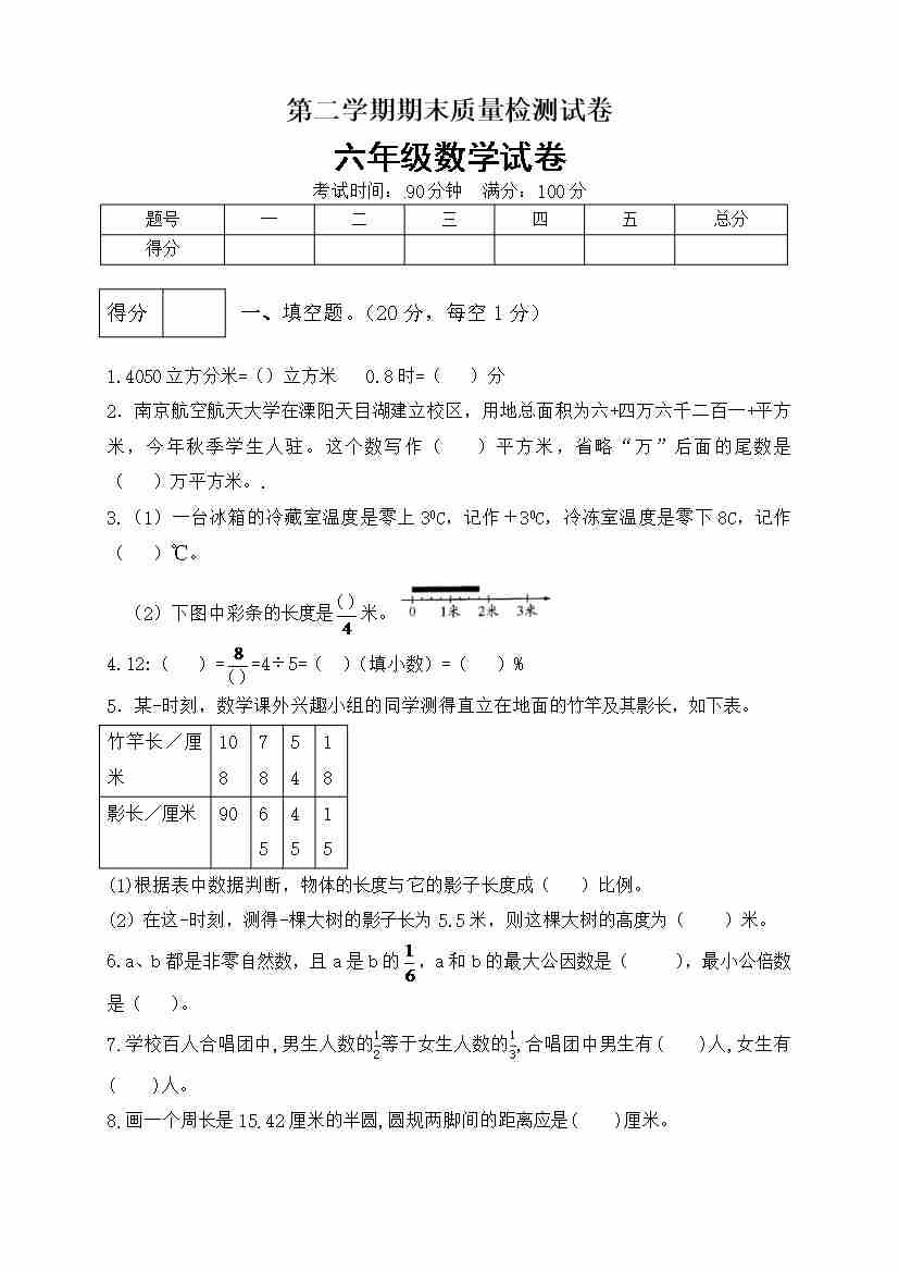 【期末提高预测卷】六年级数学下册期末质量检测卷苏教版(含答案) (2)