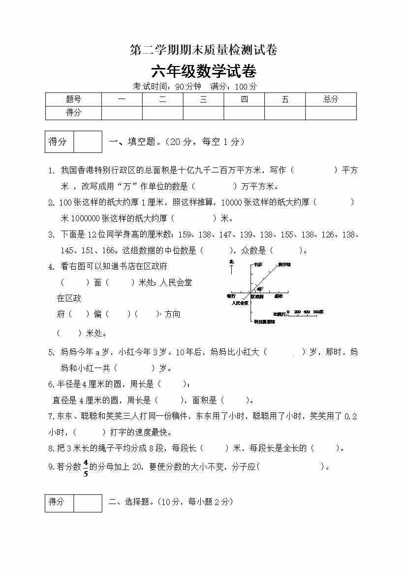 【期末提高预测卷】六年级数学下册期末质量检测卷苏教版(含答案) (10)