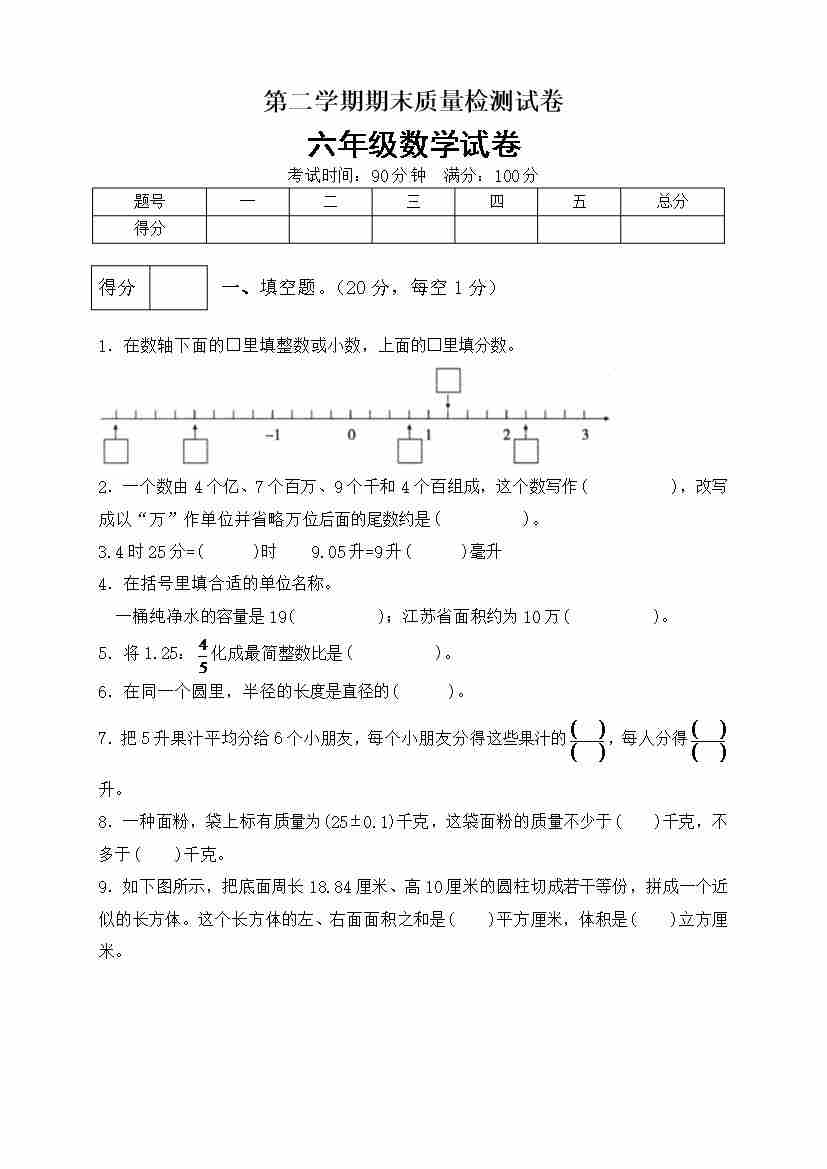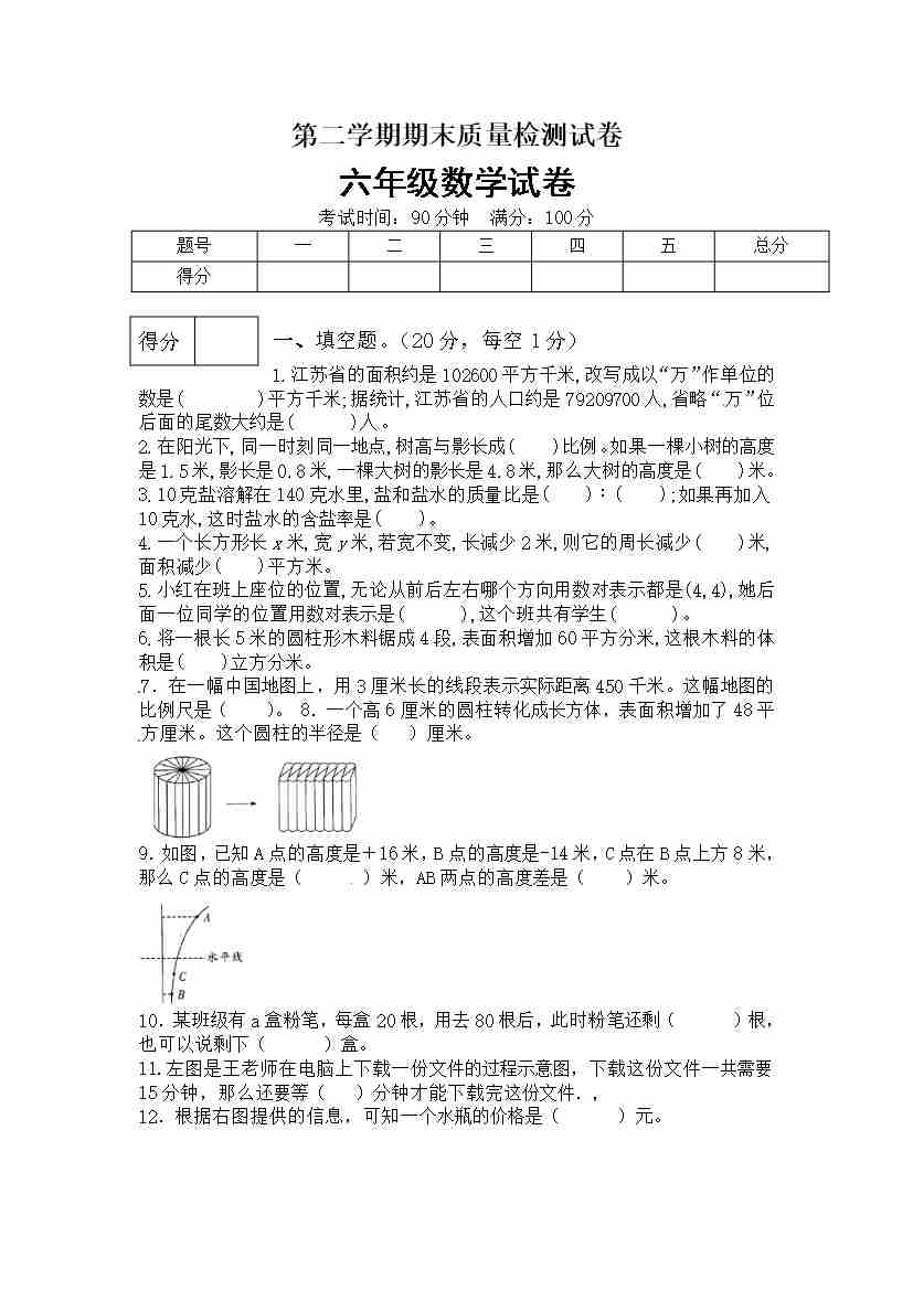 【期末提高预测卷】六年级数学下册期末质量检测卷苏教版(含答案) (5)